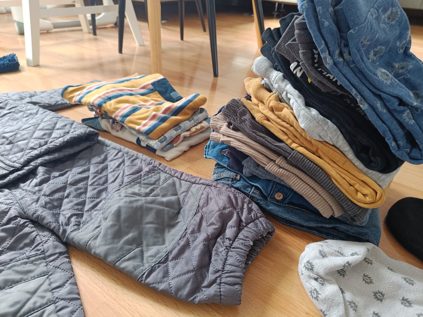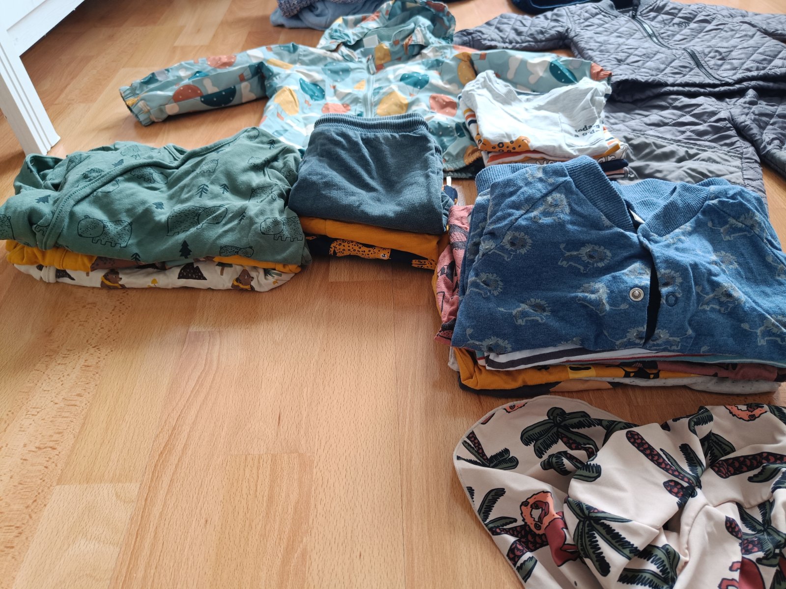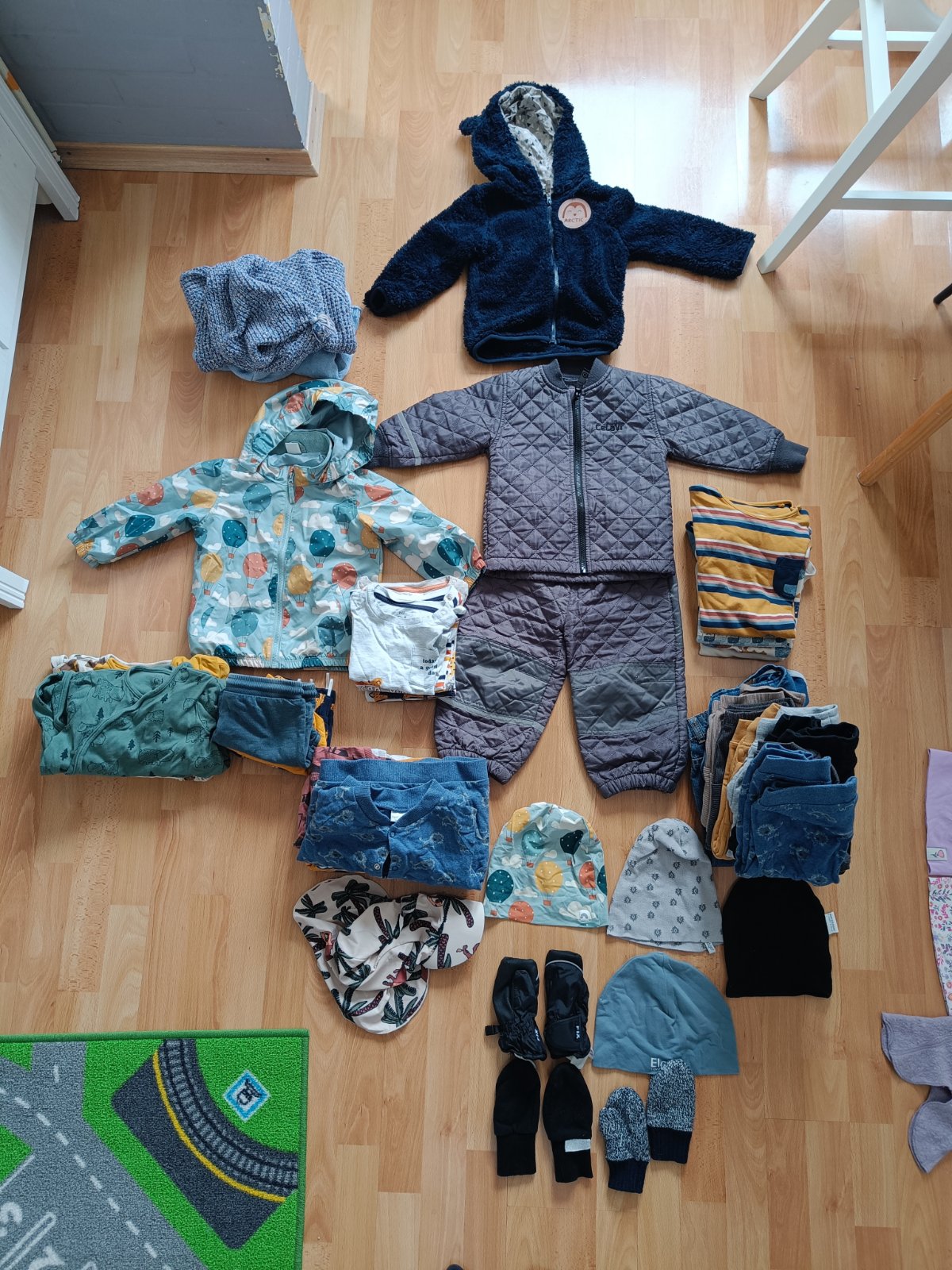 Predám balík oblečenia pre chlapca, veľkosť 12-18 mesiacov. Všetko je ako nové. V balíku svetre, bunda do dažďa, termo súprava, nohavice, kraťasy, dlhé dupačky, dlhý a krátky rukáv, prechodné čiapky a zimné rukavice.
