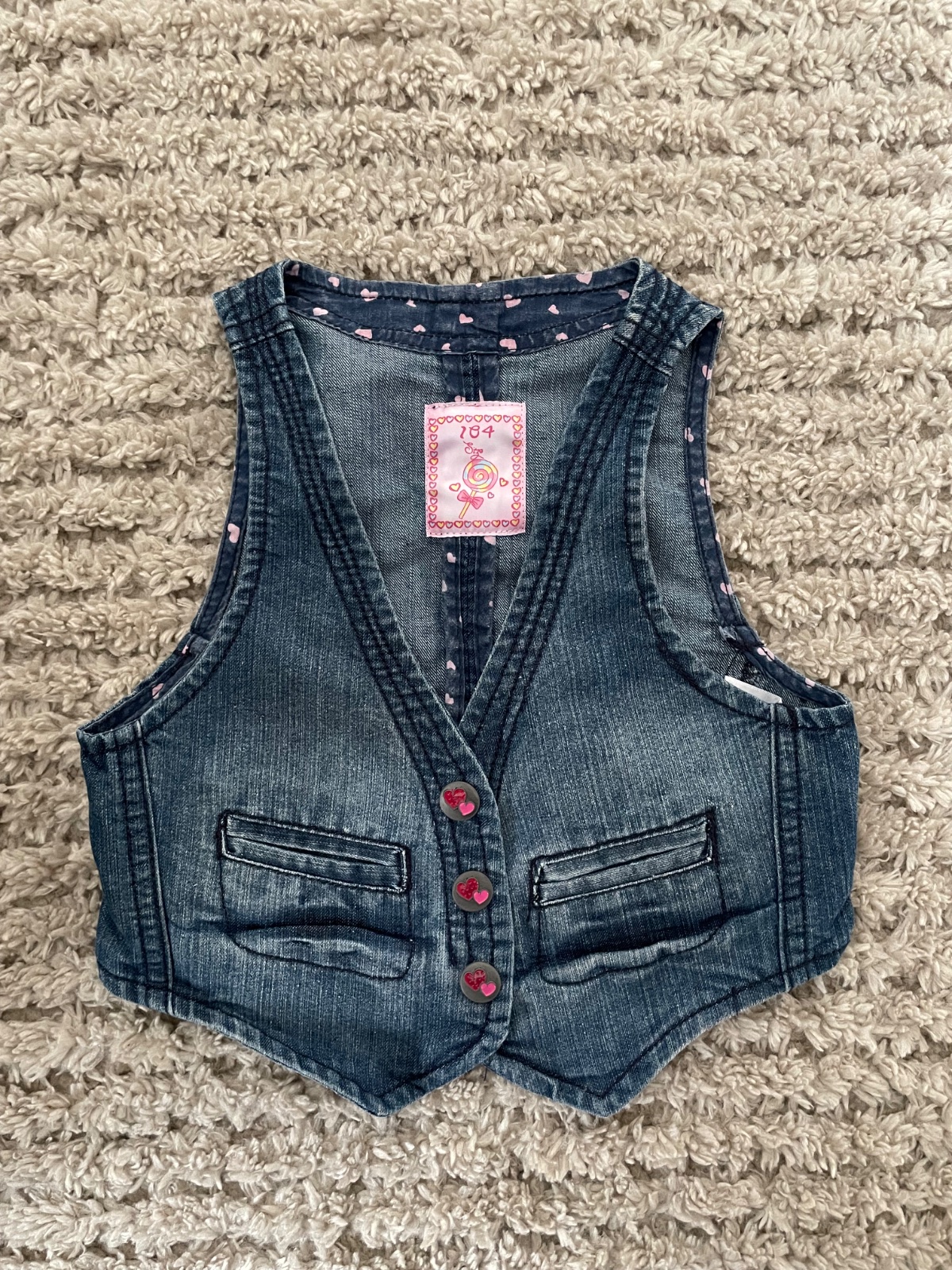 4. Modrá rifľová vestička veľkosť 104 značka KIK materiál 70% bavlna 30% polyester cena 3€