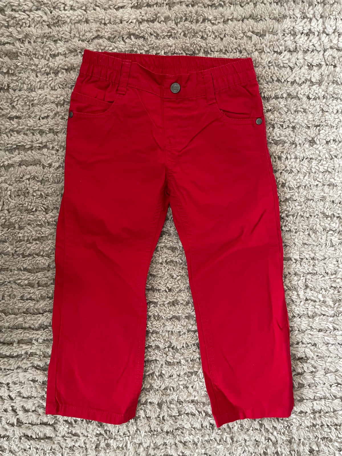8. Červené rifle veľkosť 98 značka lupilu materiál 100% bavlna cena 3€