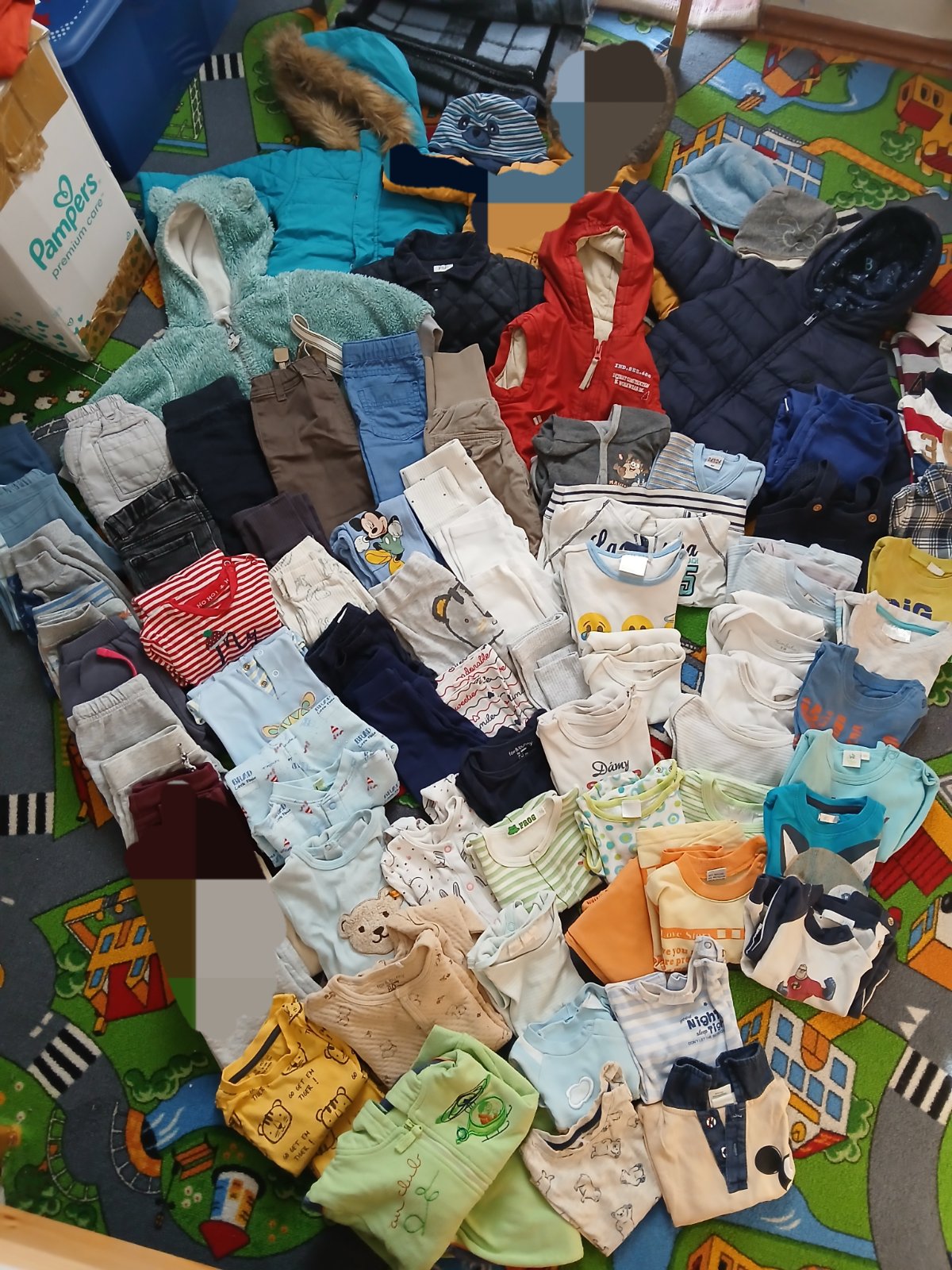 Veľký balík vo veľkosti 80. Obsah balíka je vesta bundy mikiny, súpravy,legíny, nohavice zateplene, teplaky,body a mnoho iného