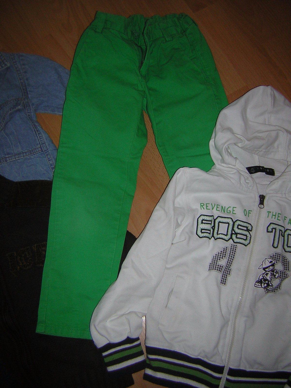 Obsahuje: 3 x nohavice - dĺžka dvoje prechodné 63 cm a jedny zimné podšíté 60 cm. 5 x Mikiny dĺžka 44 cm. Viď foto. Na donosenie na doma úplne v pohode.