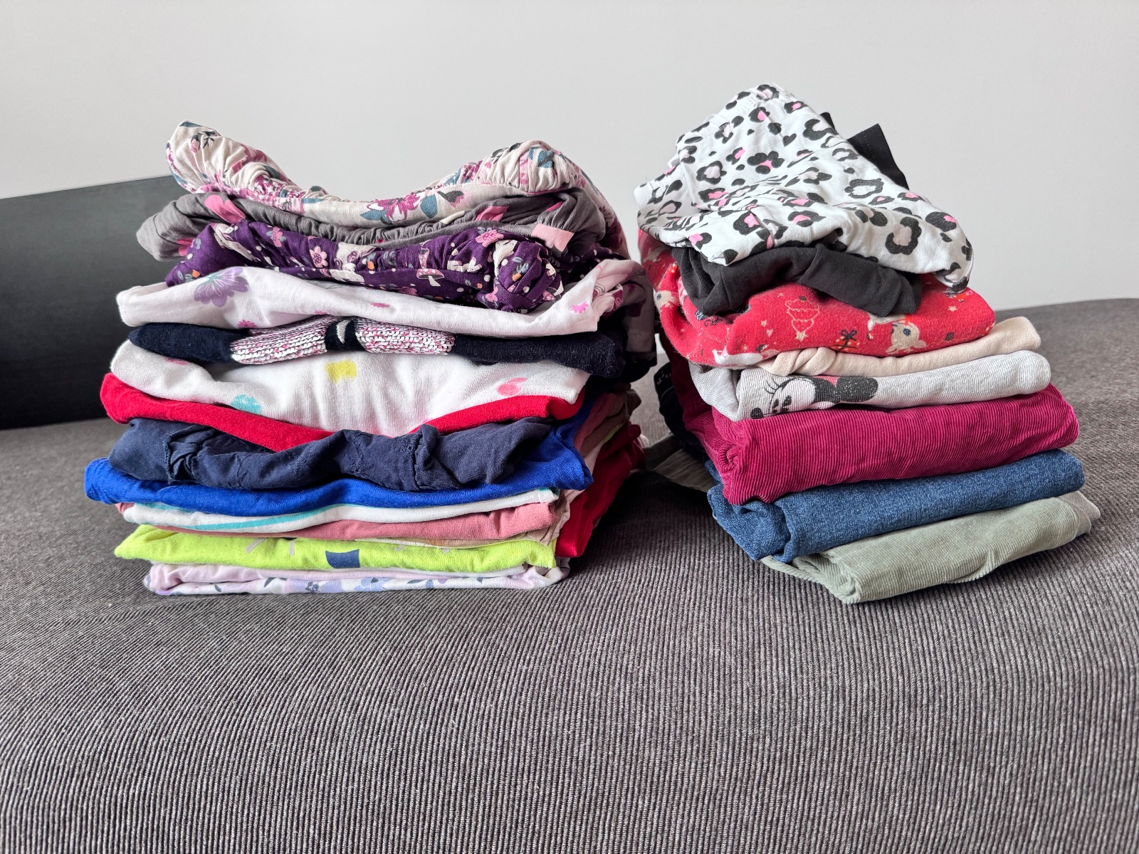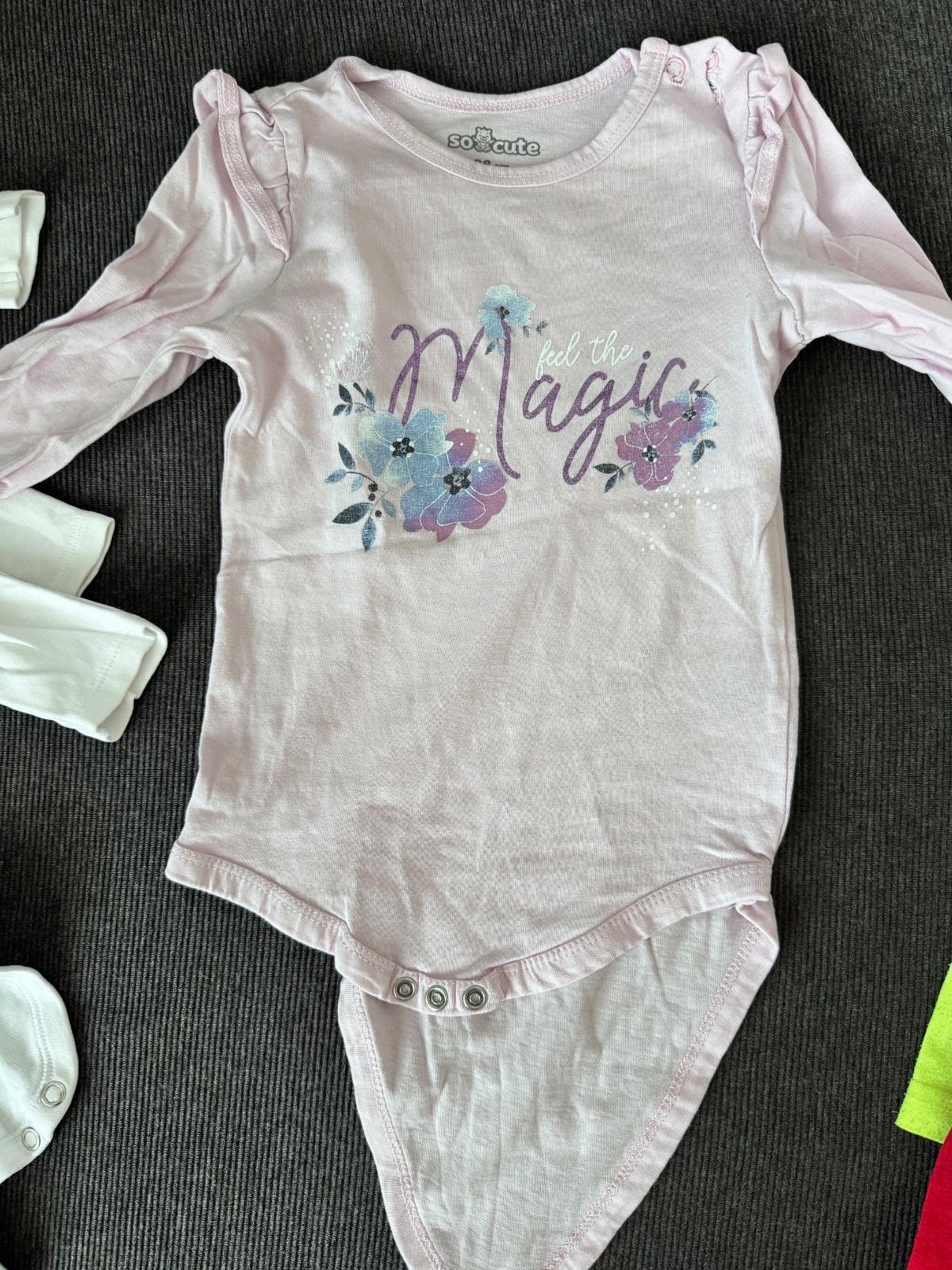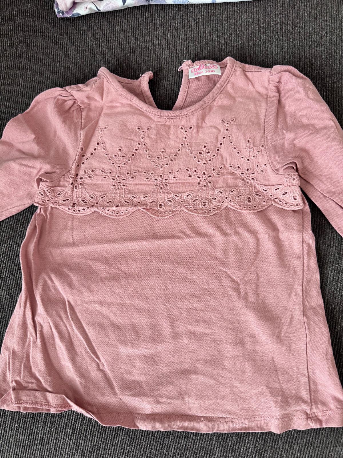 Zachovalé oblečenie pre dievčatko , 3 x šaty , 10 x trička s dlhým rukávom , 5x body , 4x nohavice ( z toho 2 podšité ) , 3x legíny , 2x tepláky , 1 svetrík , 1 mikina , 2x tielko . Niektoré vecicky boli malo krát oblečené , niektoré sú už skôr len na doma