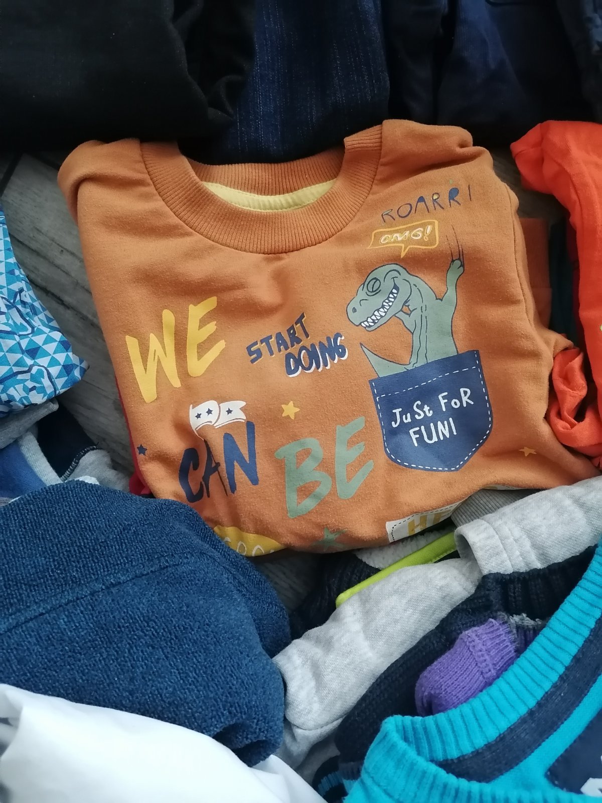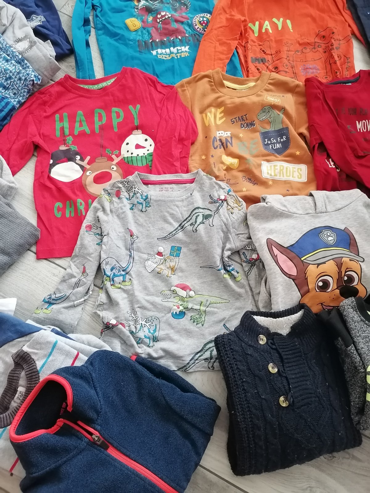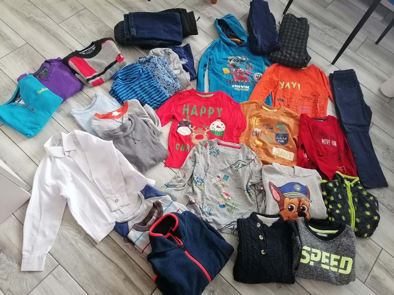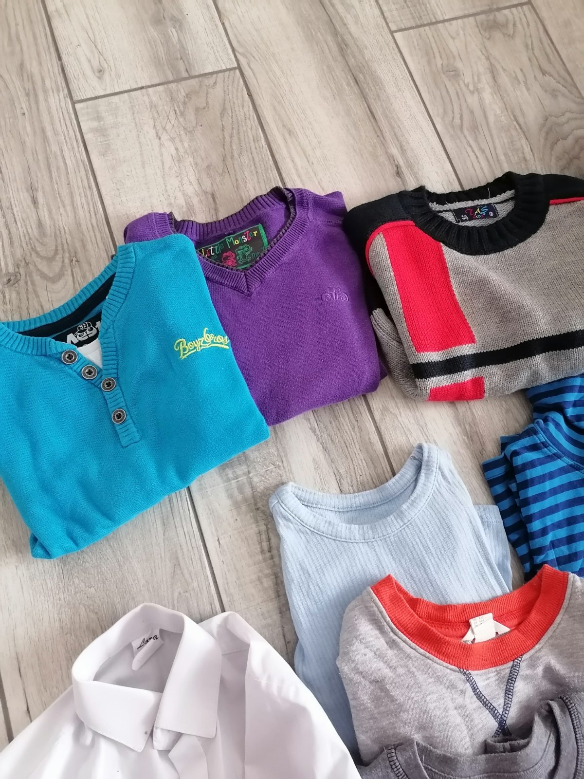 Roláky, tričká s dlhým rukávom, mikiny, svetríky, .jedny nohavice... Ďalšie sú zateplené na zimu, atď.