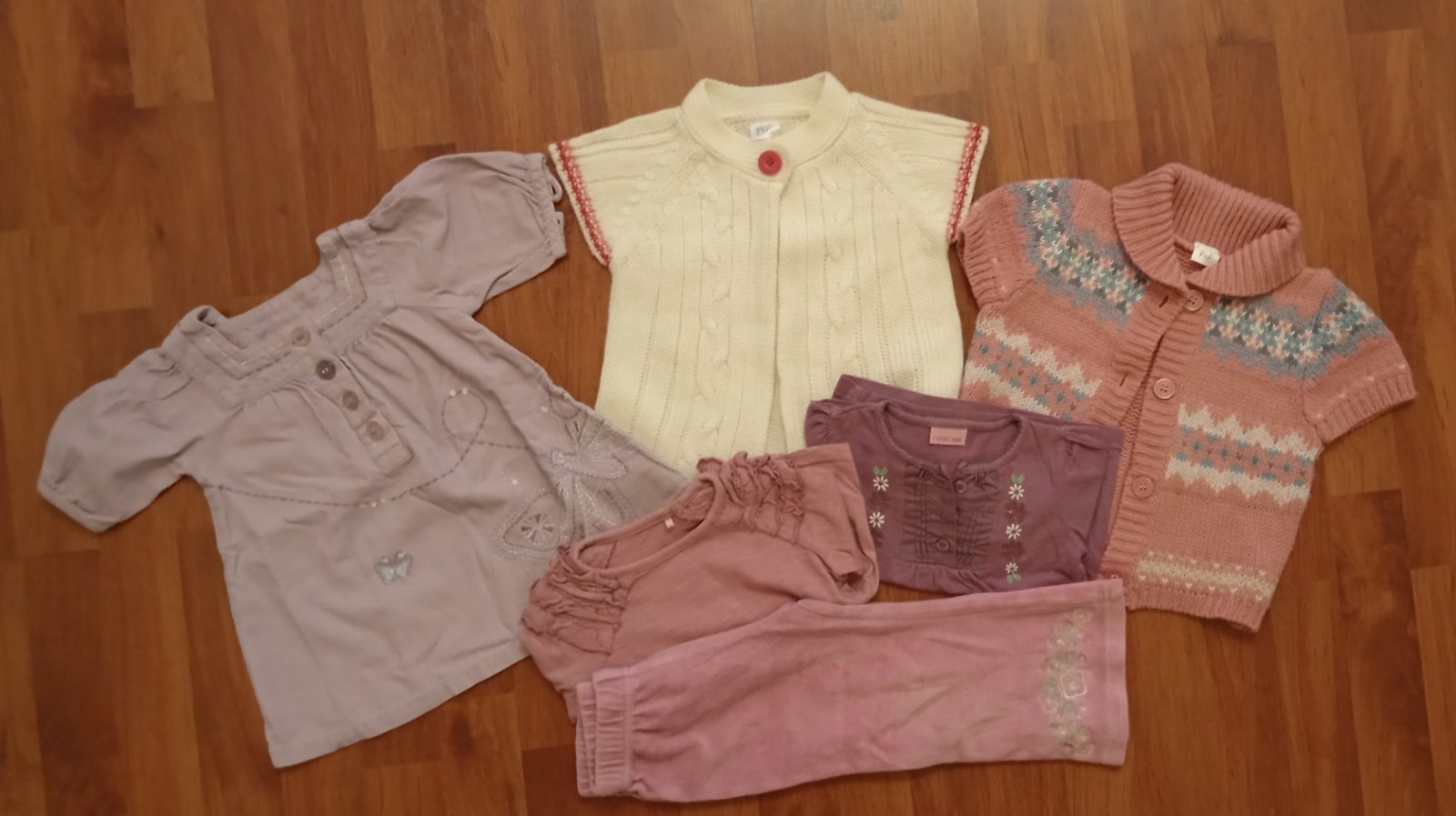 Predám mix oblečenia 80/86 veľkosť. Obsahuje : 2* tričká krátky rukáv,, 1*body dlhý rukáv, 1*klobucik, 1* tepláky