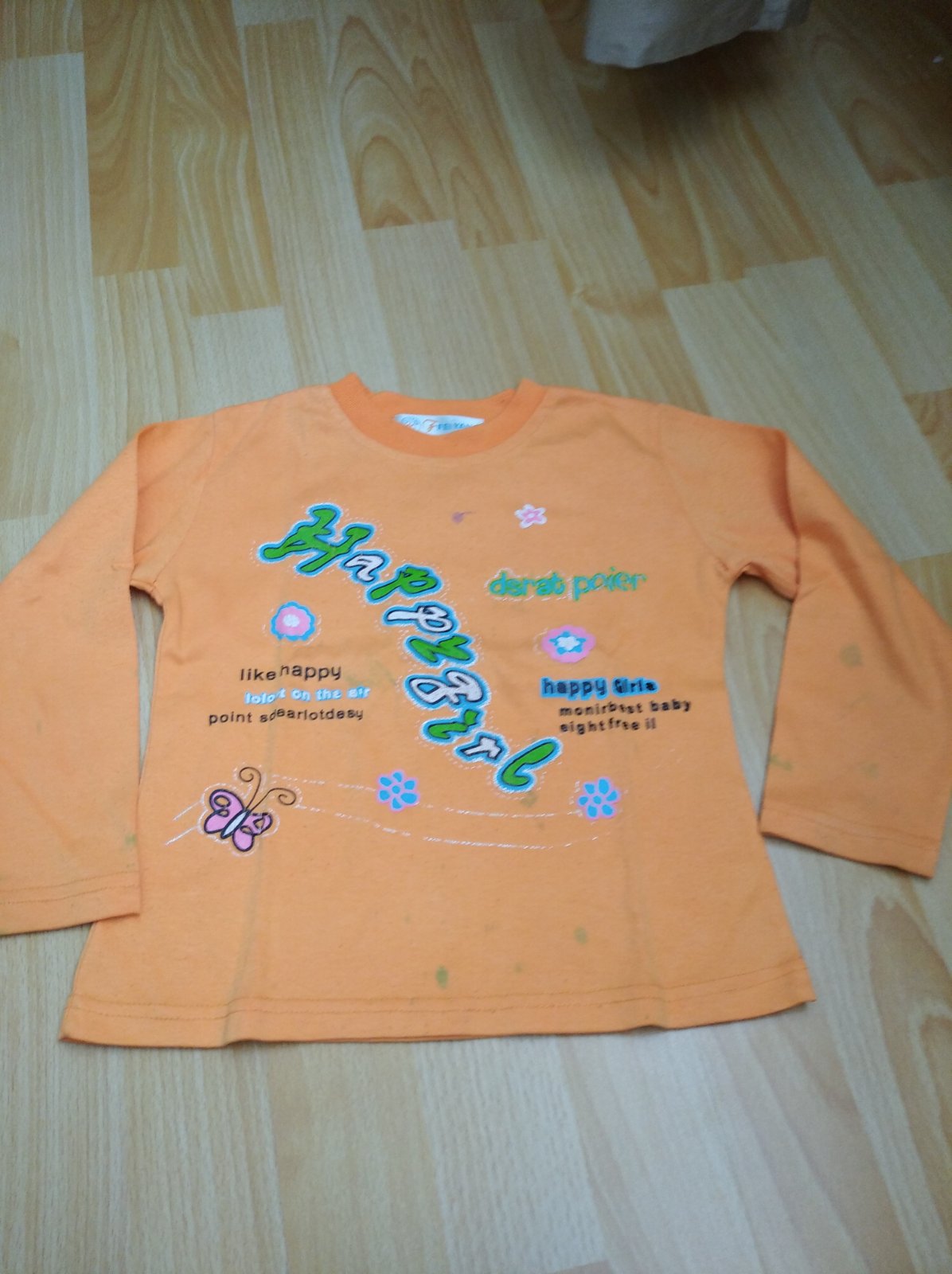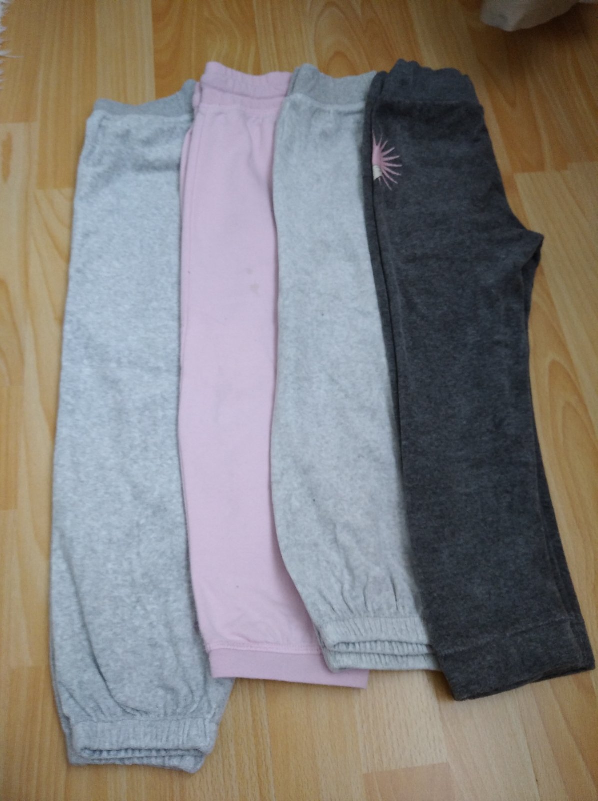 Väčšina vecí je vo veľkosti 116 alebo v dvojcisli so 116-tkou. Veci sú nosené dvomi dievčatkami čo je aj viditeľné na stave. Odporúčam nenáročnej mamičke alebo len na ihrisko či na zábavu po dvore. Všetko má zmolky, bledsiu farbu praním alebo fliaciky, Nájde sa oj zasita mini dierka,na oranžovej a modrej teplákovej súprave chýbajú bezce na zips.