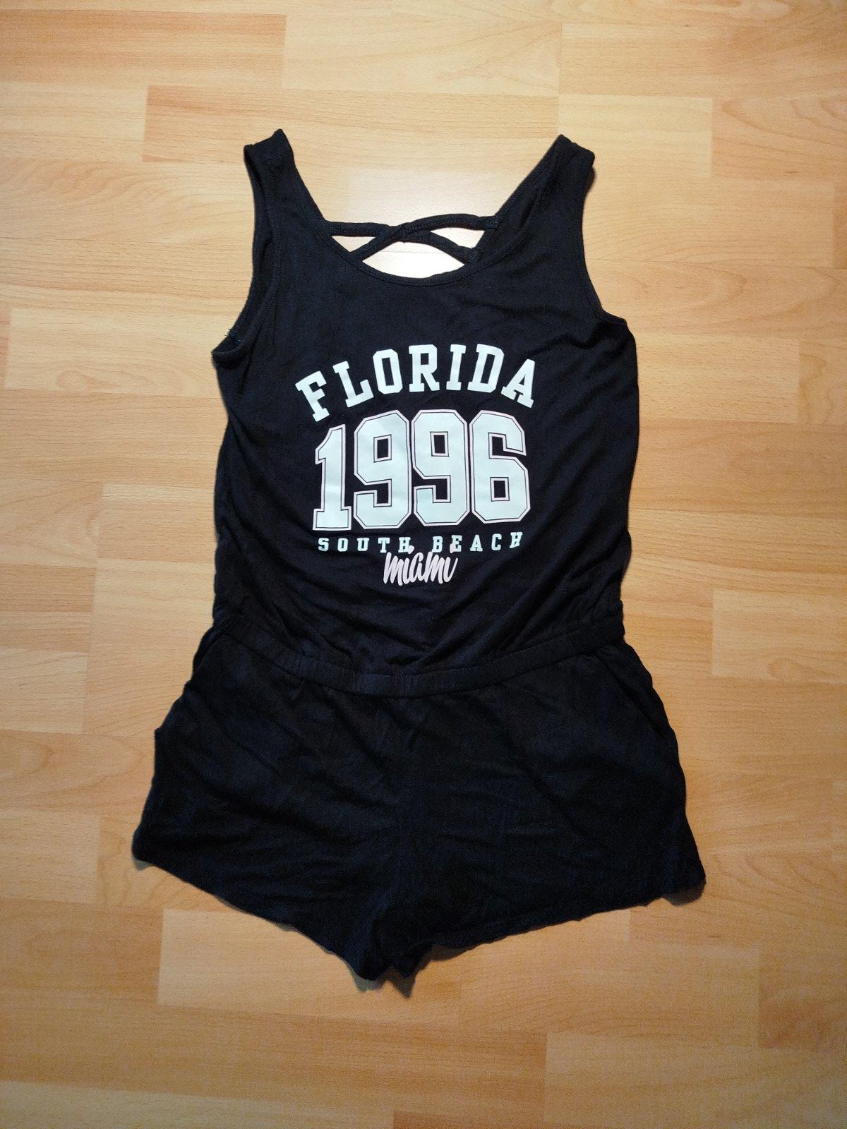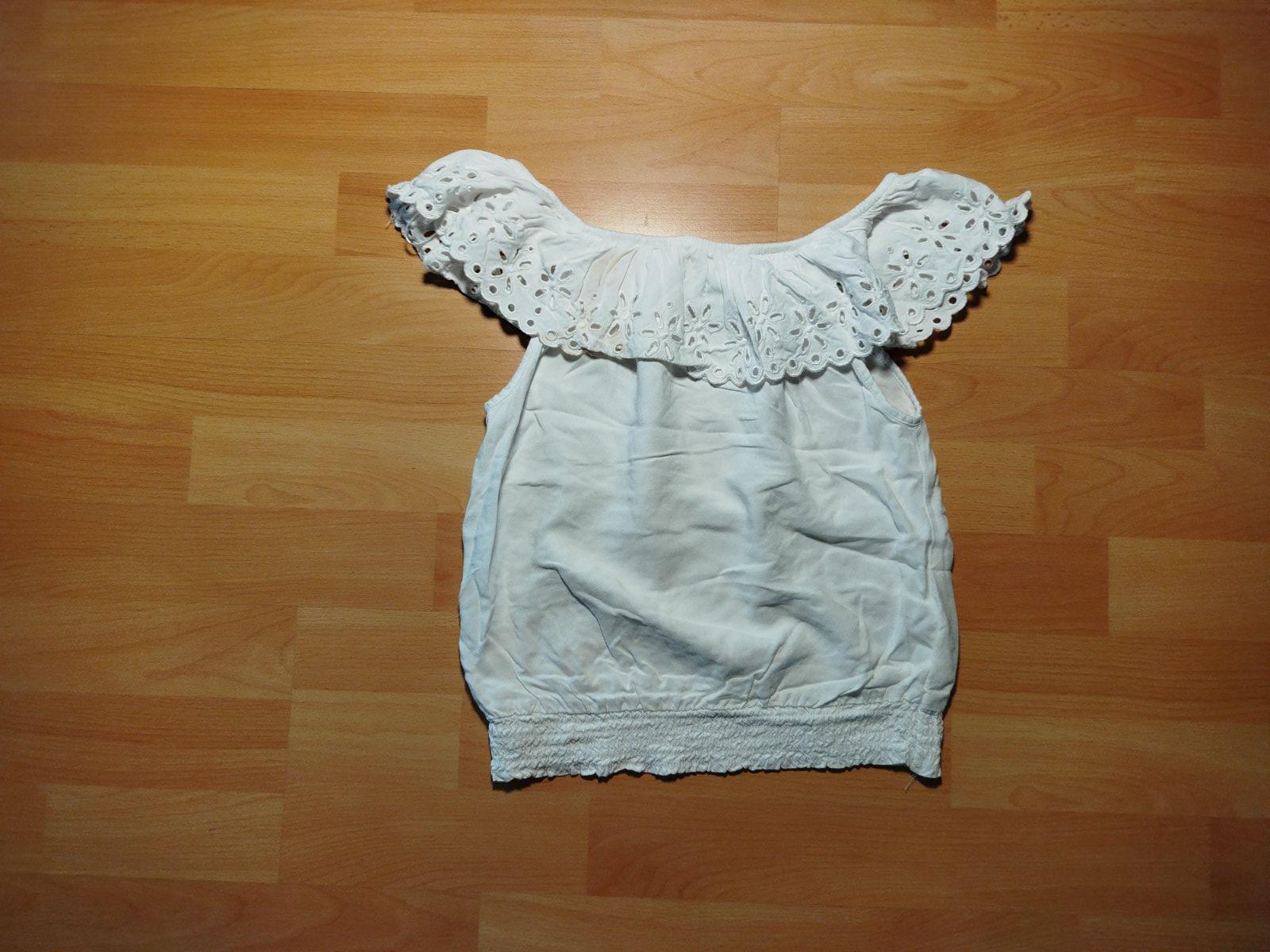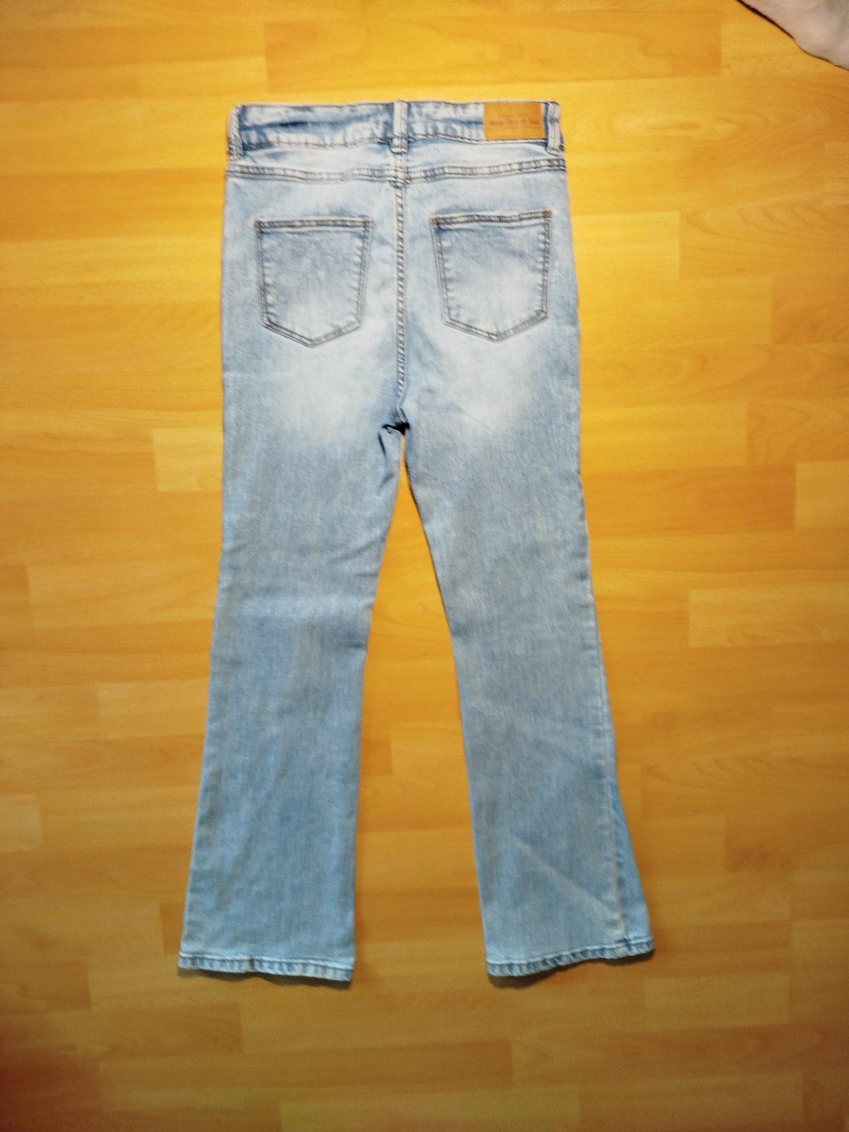 Veľkosť je 152.Je to pekné oblečenie, ktoré obsahuje 2-jo tričiek s krátkym rukávom, mikinu, blúzku, jumpsuit, nohavice,2-jo riflí skinny značka Majoral (modré boli iba 1-krát nosené), rifle módne na konci zvoncové a krátke rifle na traky. Poštovné platí kupujúci.