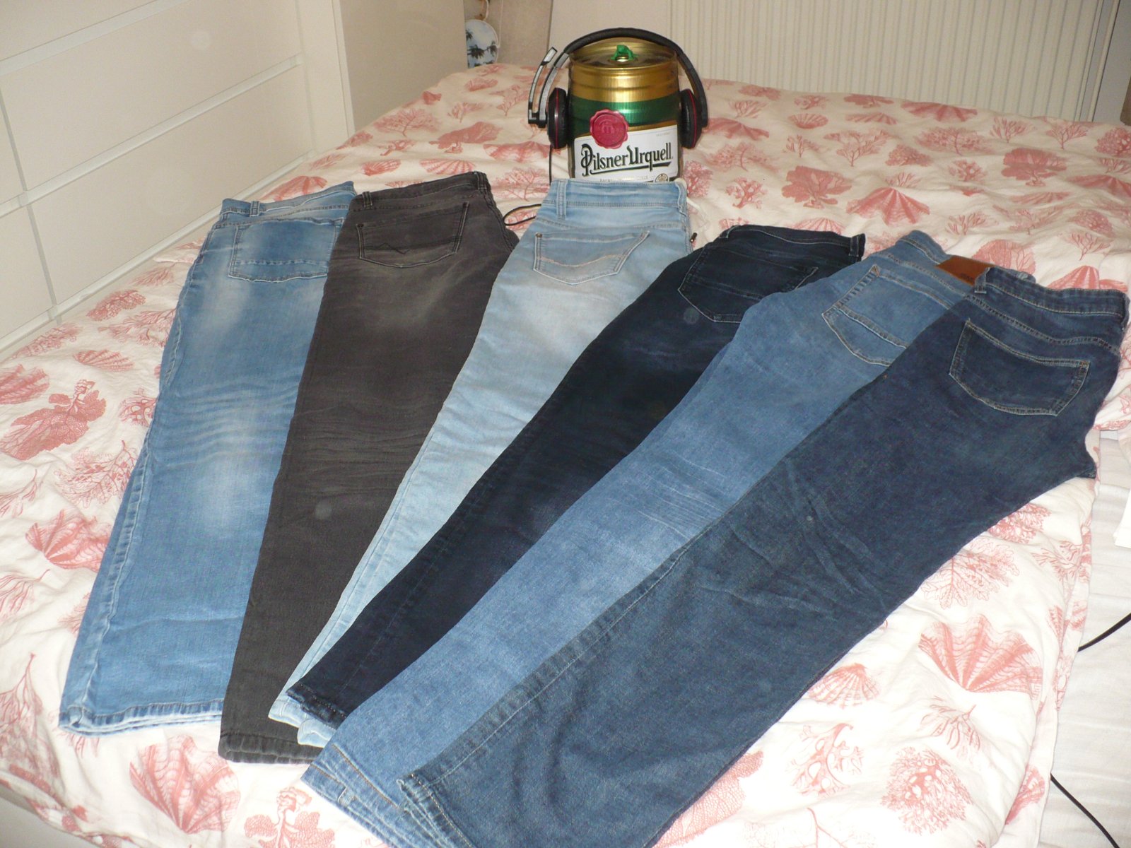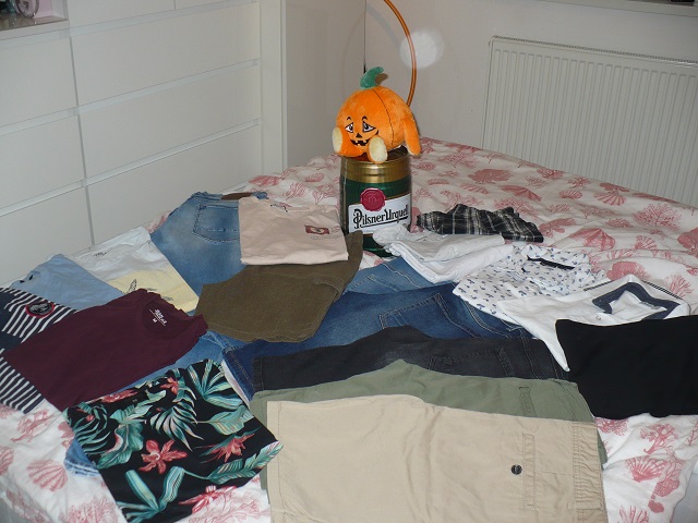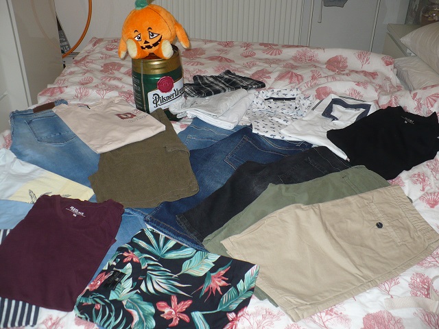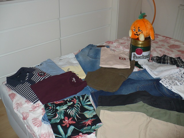 Balik veci pre študenta obsahuje riflové nohavice rozne farby 6ks č-30-31 č S-M+ tričká k tomu spolu znížené na 7€ ešte balík veci na leto kopec krátkych nohavíc tričká a pyžamo k tomu tiež 7€ veci nepoškodené ,dobrý stav nohavice ako nové