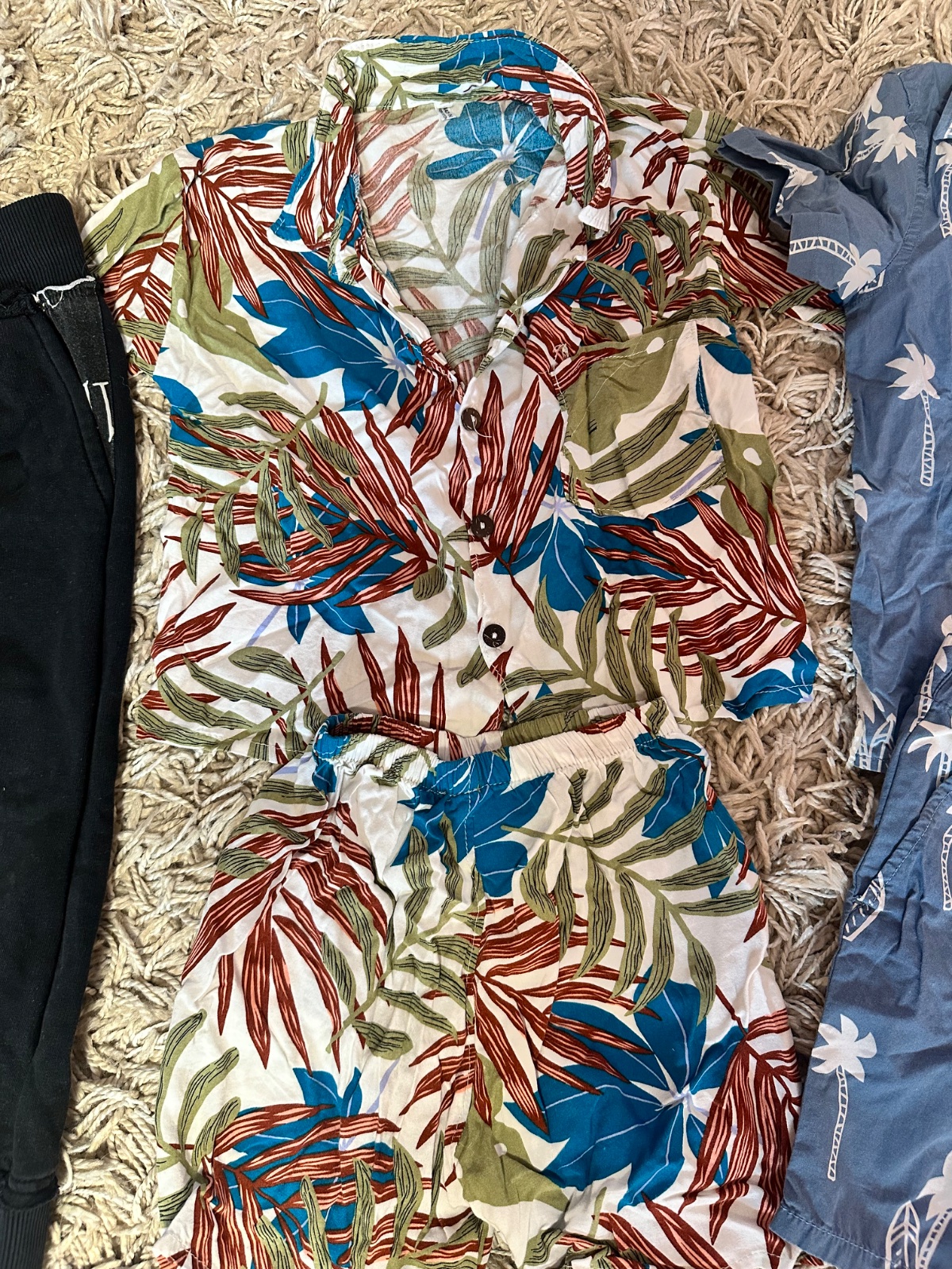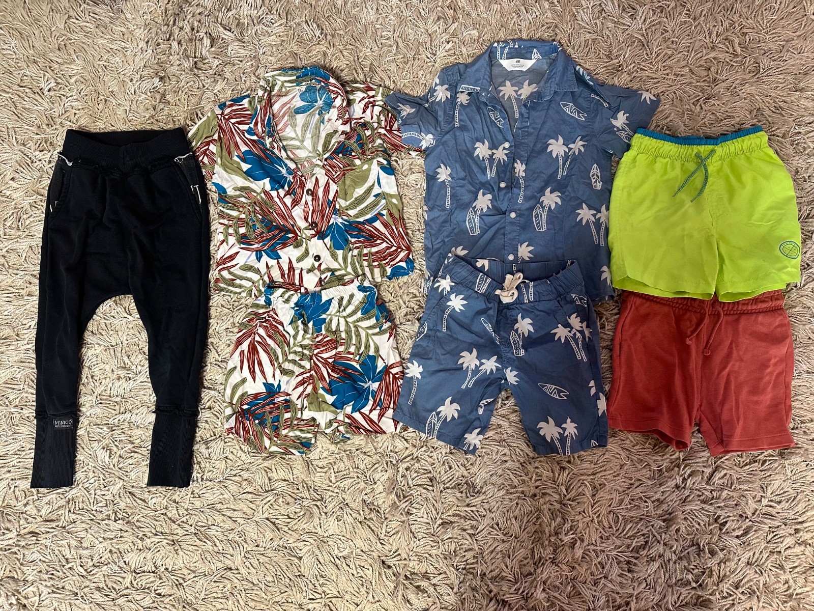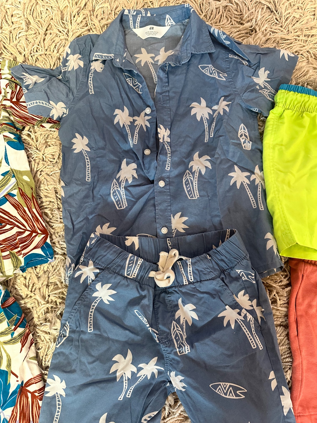 • farebný letný komplet (košeľa + kraťasy) – málo nosený, zachovalý