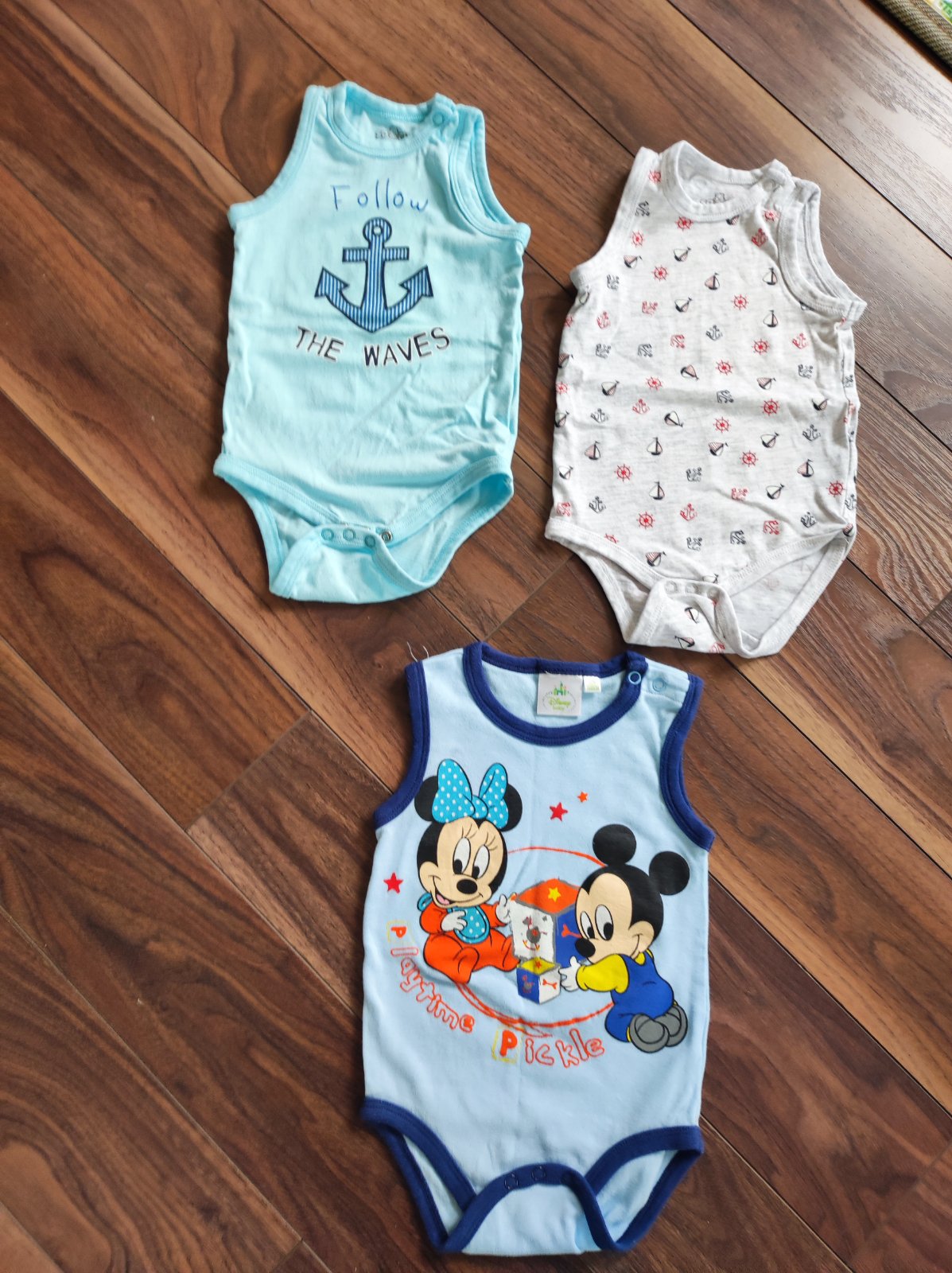 Balík body v peknom stave, bez fľakov. Veľkosť 74 (značka so cute 6-9 mesiacov), Disney body veľkosť 74/80. Nefajčiarska domácnosť, bez domácich zvierat.