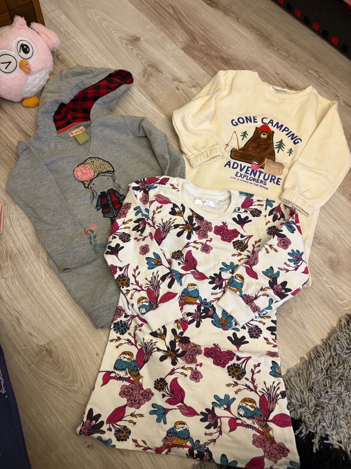 Ponúkam balik oblečenia pre dievcatko velkost 116, obsah balíka : župan, svetrik z jemnej vlny, vesta, mikina, bundicka macko, dlhé tricko s 3/4 kratasami