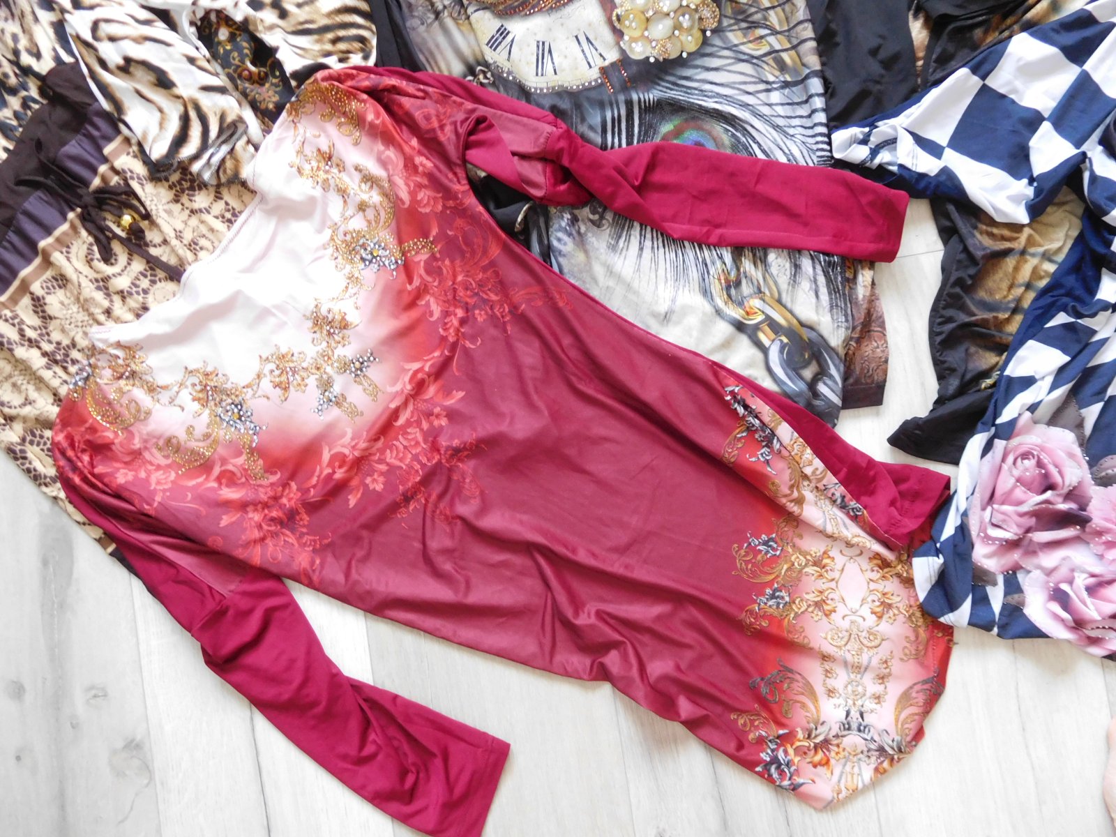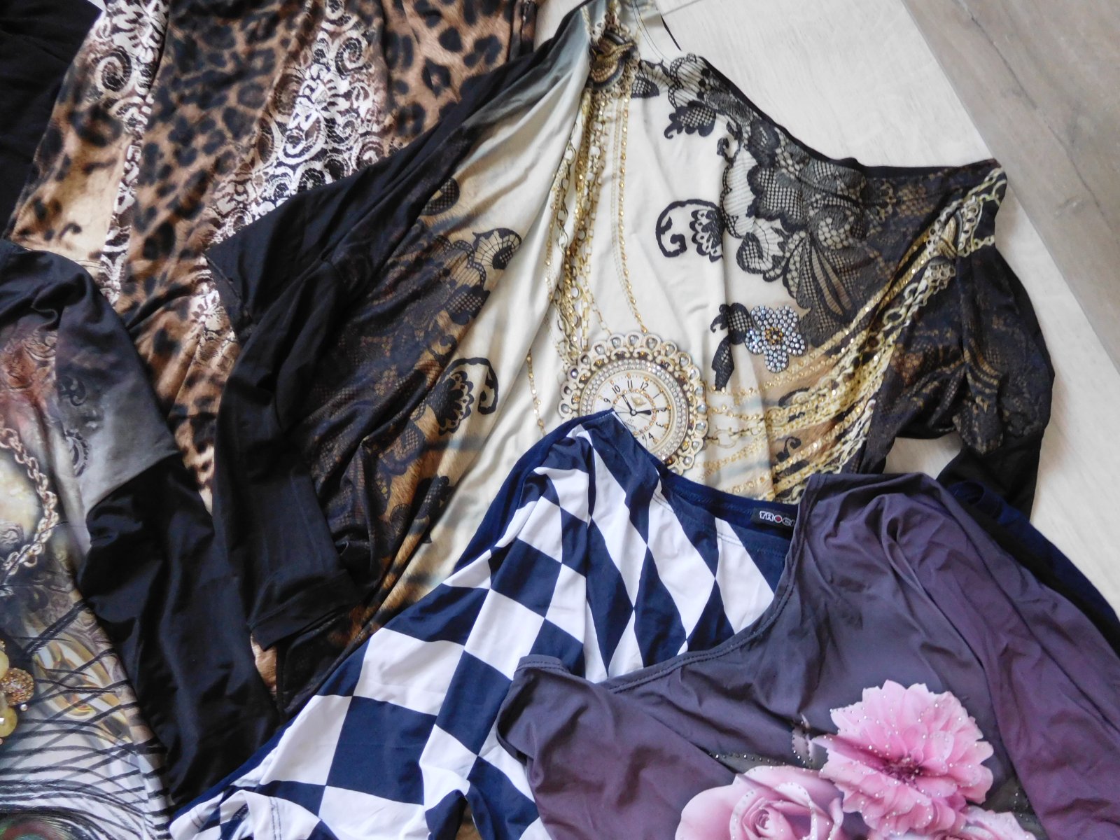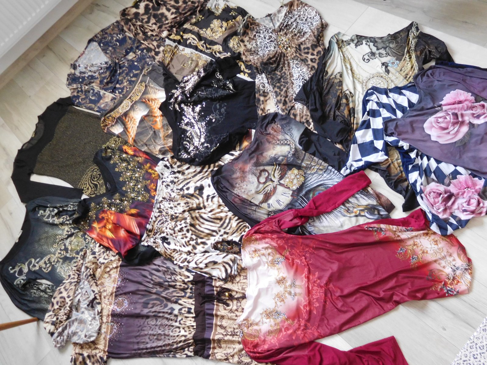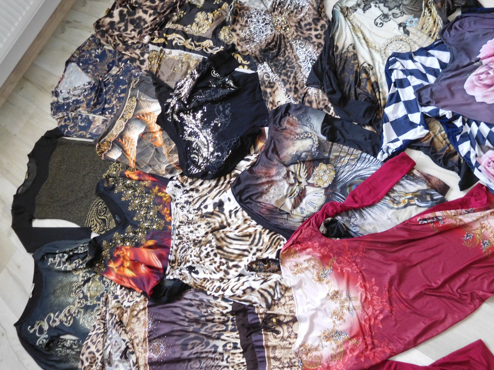 Ponúkam na predaj mix tričiek atipického strihu+šiat, predaj iba spolu, všetko na foto veľmi veľmi pružné, nepoškodené predaj iba spolu, samozrejem nie je všetko nafotené, posielala by som cca -