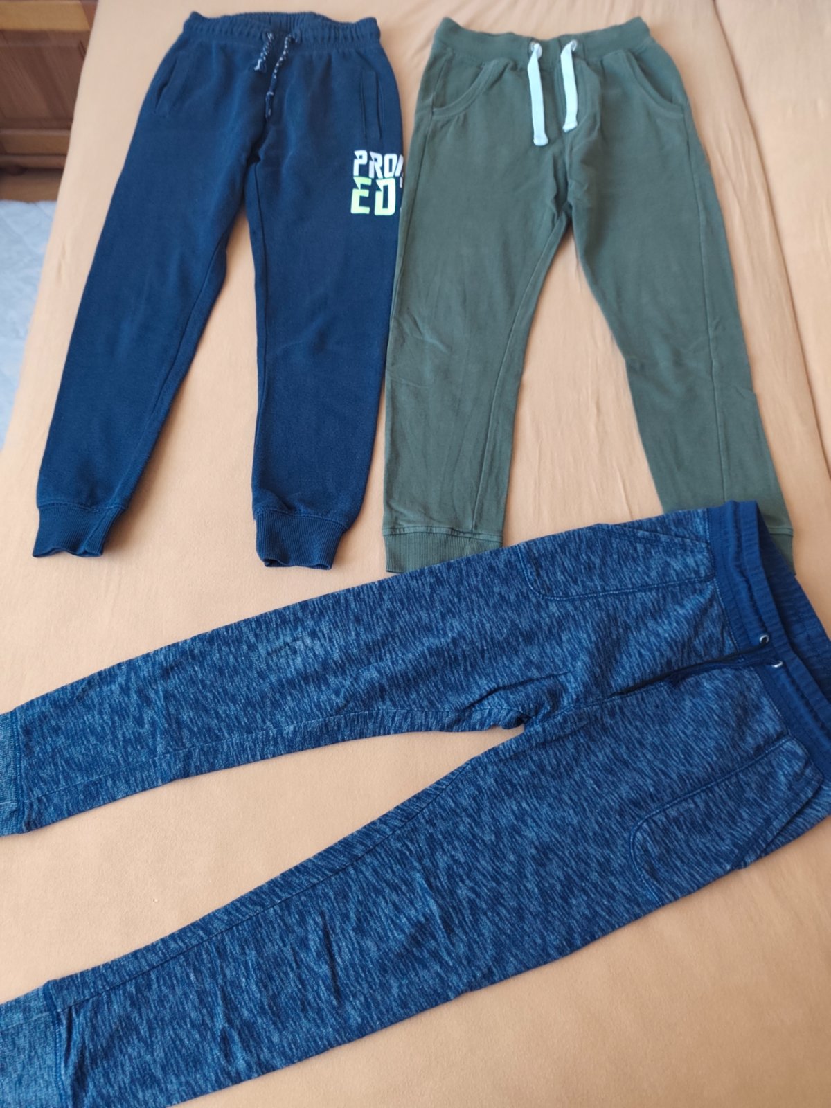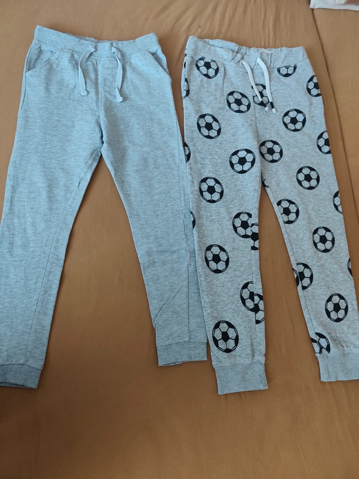 8x tepláky (z toho 6x v. 140 zn. Sinsay a H&M, 1x v. 134/140 a 1x v. 9-10 rokov, dinosaurové majú zošúchaný obrázok na jednom kolene a modré majú fliačik viď foto)