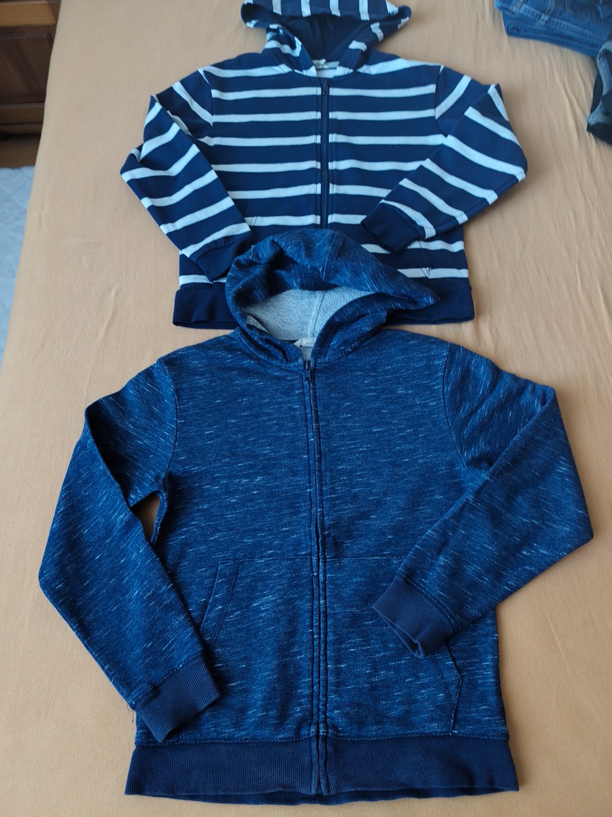 2x mikina na zips zn. H&M, v. 140 (tmavomodrá pásikavá a tmavomodrá žihaná)