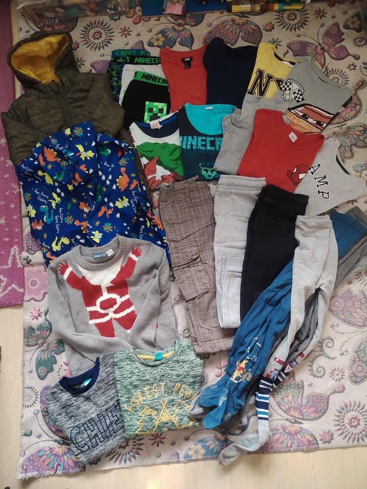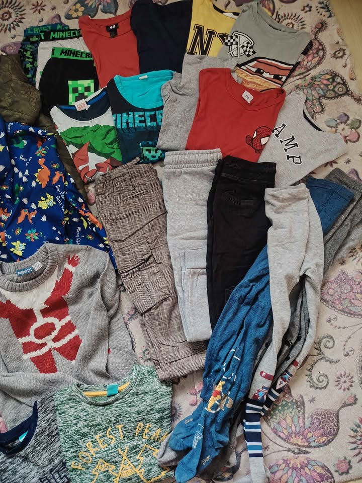 Predám oblečenie po synovi. Niečo nosené viac niečo menej. Veľkosť 122. Balík obsahuje: zimná bunda,sustiakova bunda, vianočný sveter, 3x mikina, 8x tričko krátky dlhý rukáv, nohavice,2xteplaky, 3x boxerky a 4x pančuchy. Cena je 32€. Na dobierku neposielam
