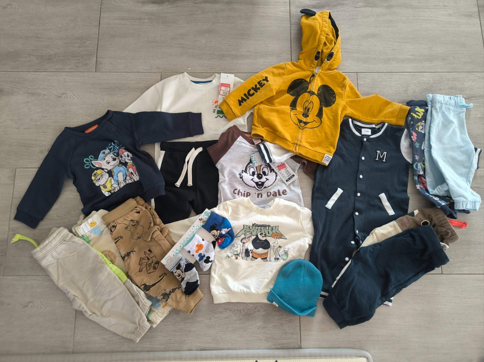 Veci sú nové, nosené bolo len: overal aMickey Mouse mikina na zips, sú tam veci s visačkou a ostatné veci bez visačky sú len opraté. Všetko je vo veľkosti 74.