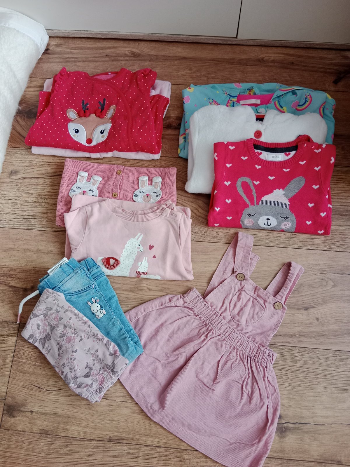 10 kúskov vo veľmi dobrom stave, niektoré viac nosené, niektoré menej, bez fľakov. Na niektorých je uvedená veľkosť 80, ale sedia na menšie číslo.