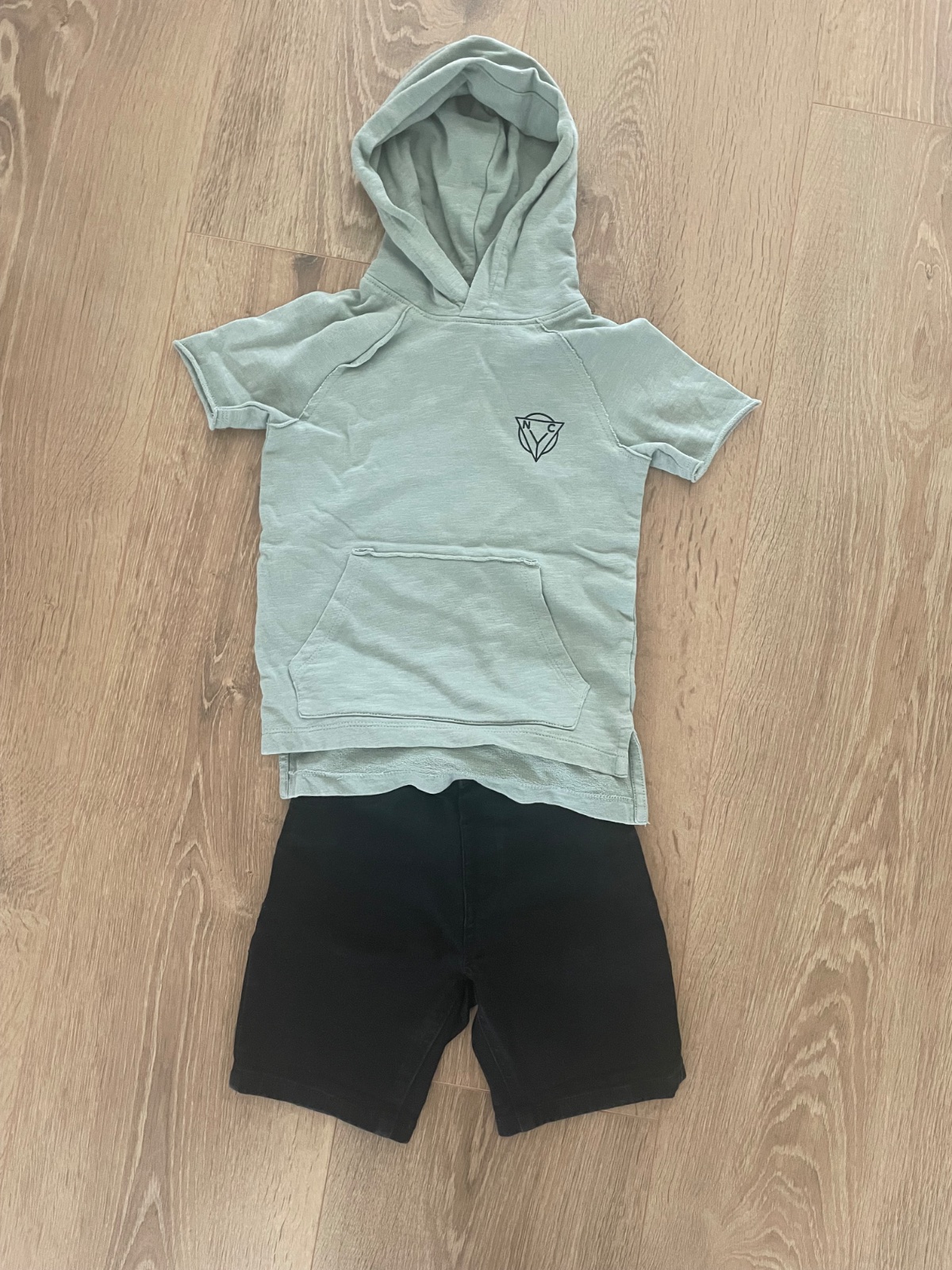 Predam v top stave tricko s kapucnou a riflove cierne kratasy znacky Next a velkosti 110. Kratasy su natahovacieho materialu, velmi pohodlny.