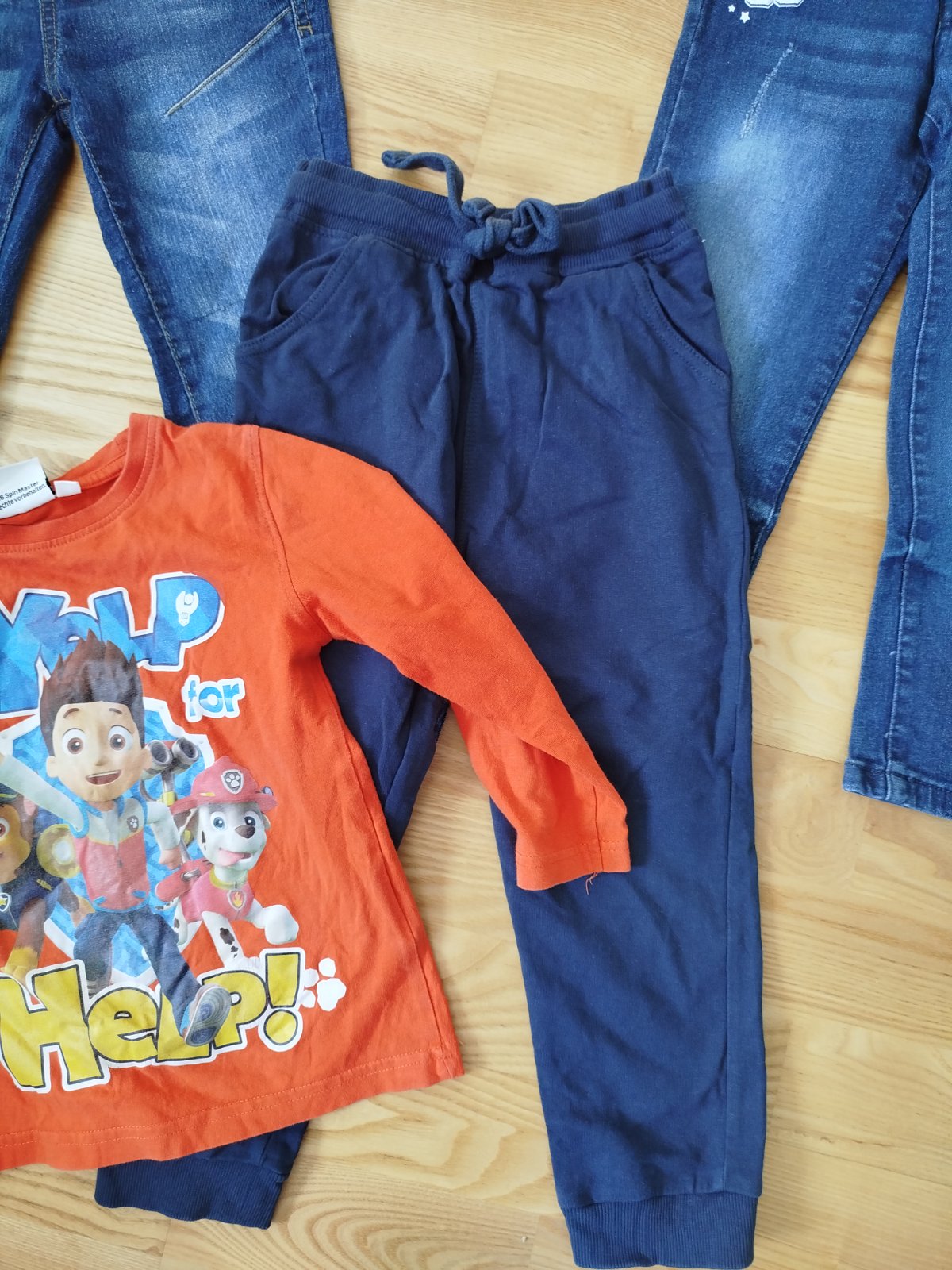 Balík 3 mikiny, 1 polokošeľa, 1 rifle Všetko 110-116 Výborný stav