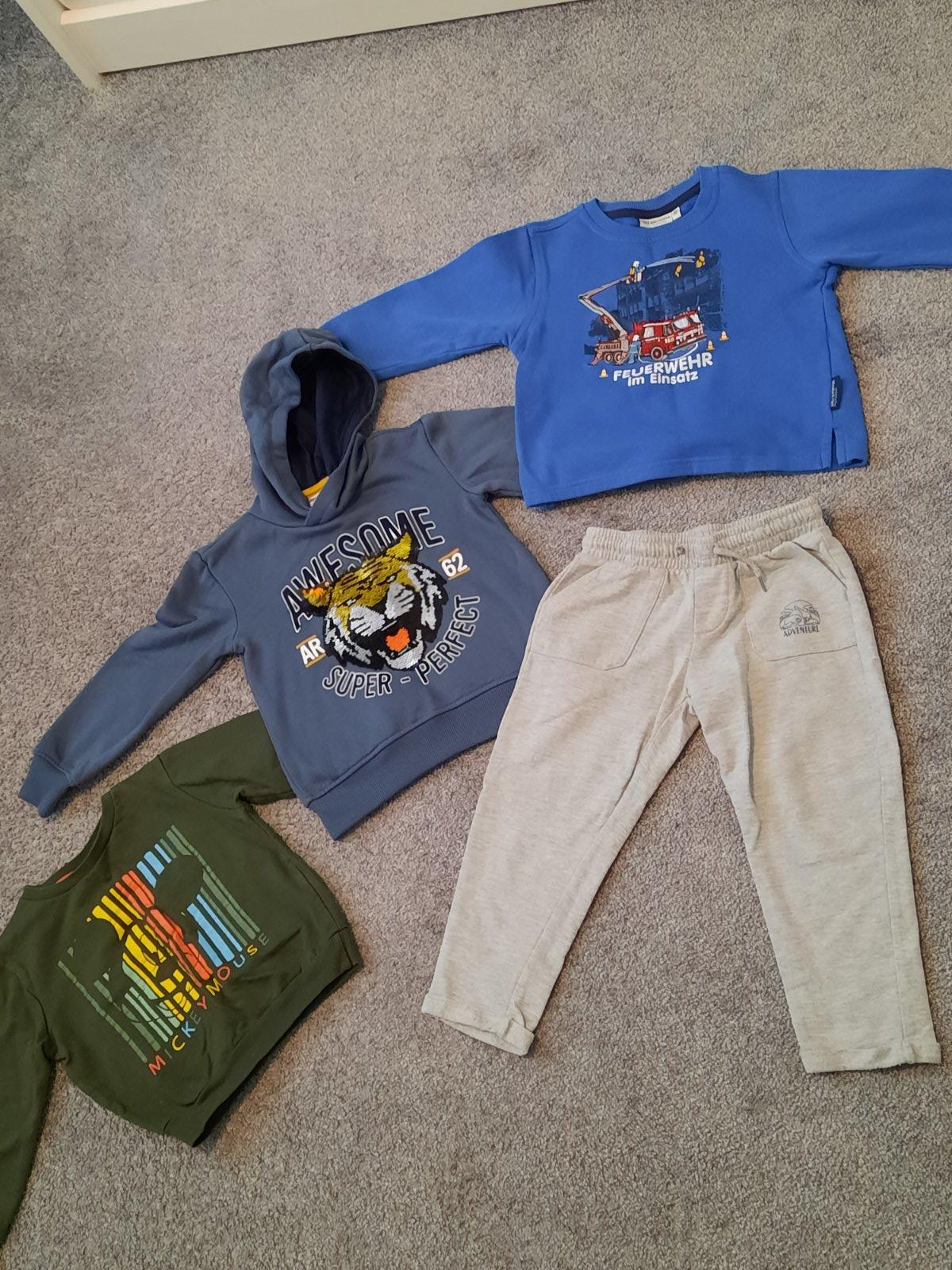 Veľkosť 104, príp. 104/110, Mikina s tigrom má žmolky, ostatné veci sú v peknom stave.