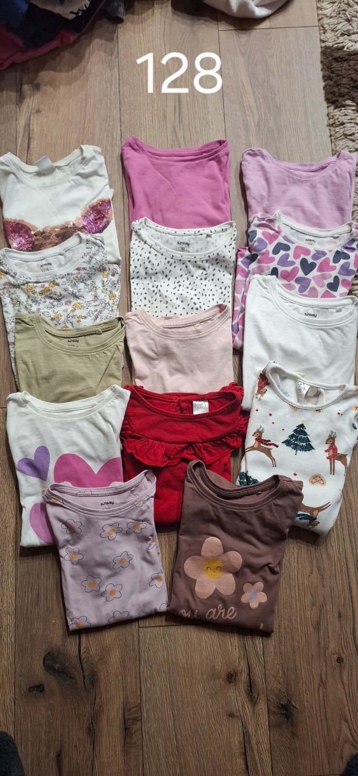 Dvoje naľavo F&F 7-8 r Ružové kúpili , písané 110/116,ale v pohode 122 Modré Shein 122 Cena za všetky