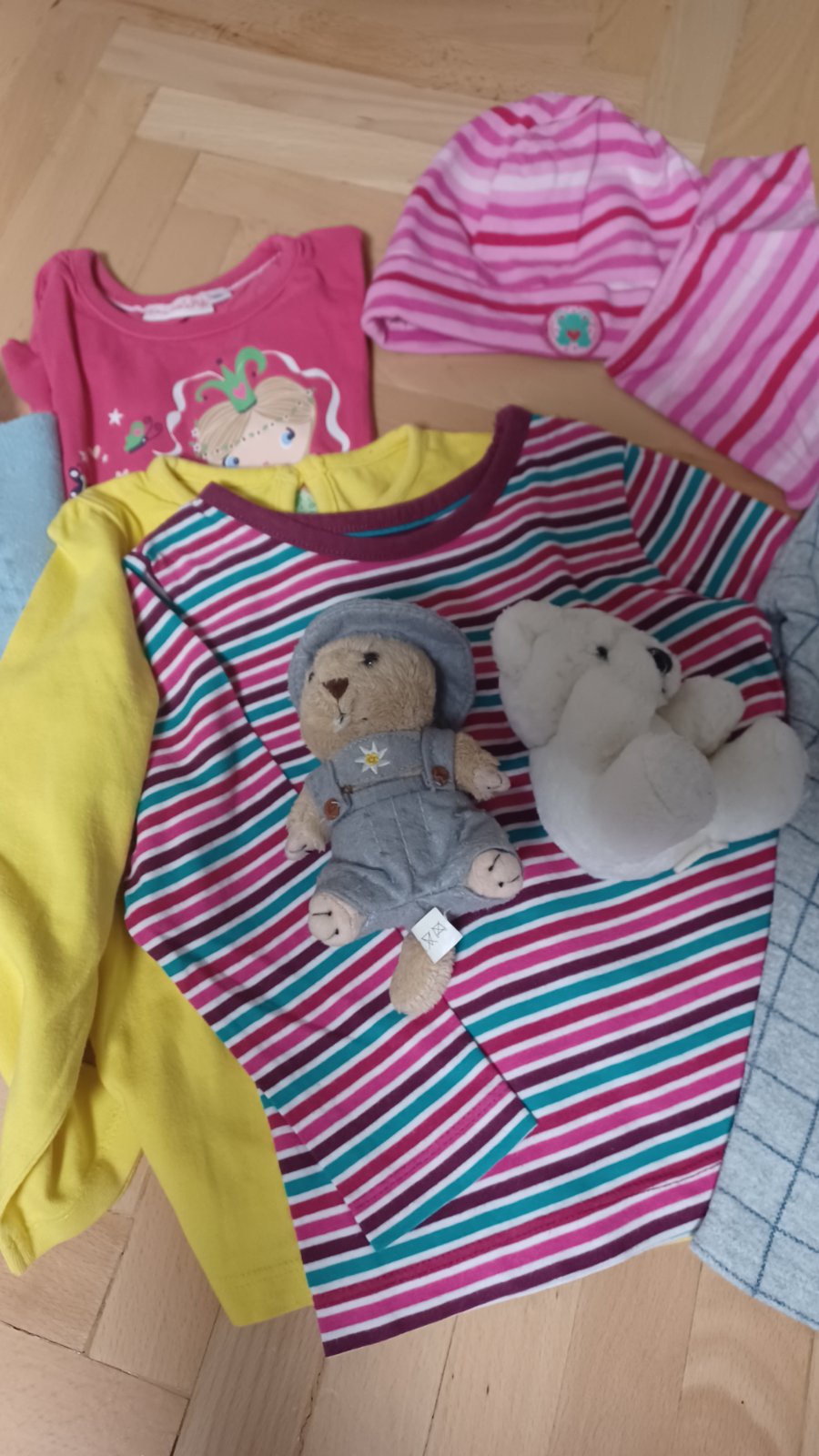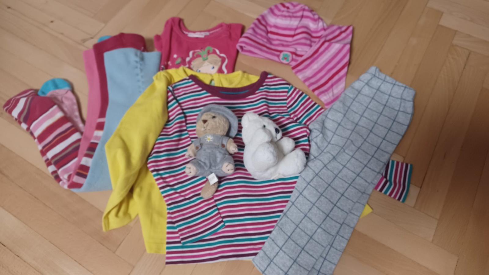 Posuniem za poštovné oblečenie vo veľ. 86/92. Nosené, no ešte poslúži. Pančuchy 3x, tričká 3x, legíny, čiapka + nákrčník, plyšáci.