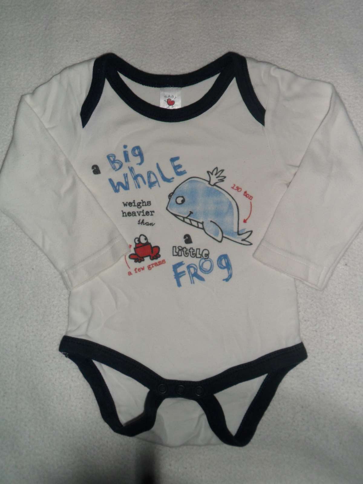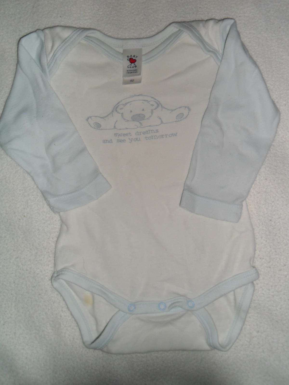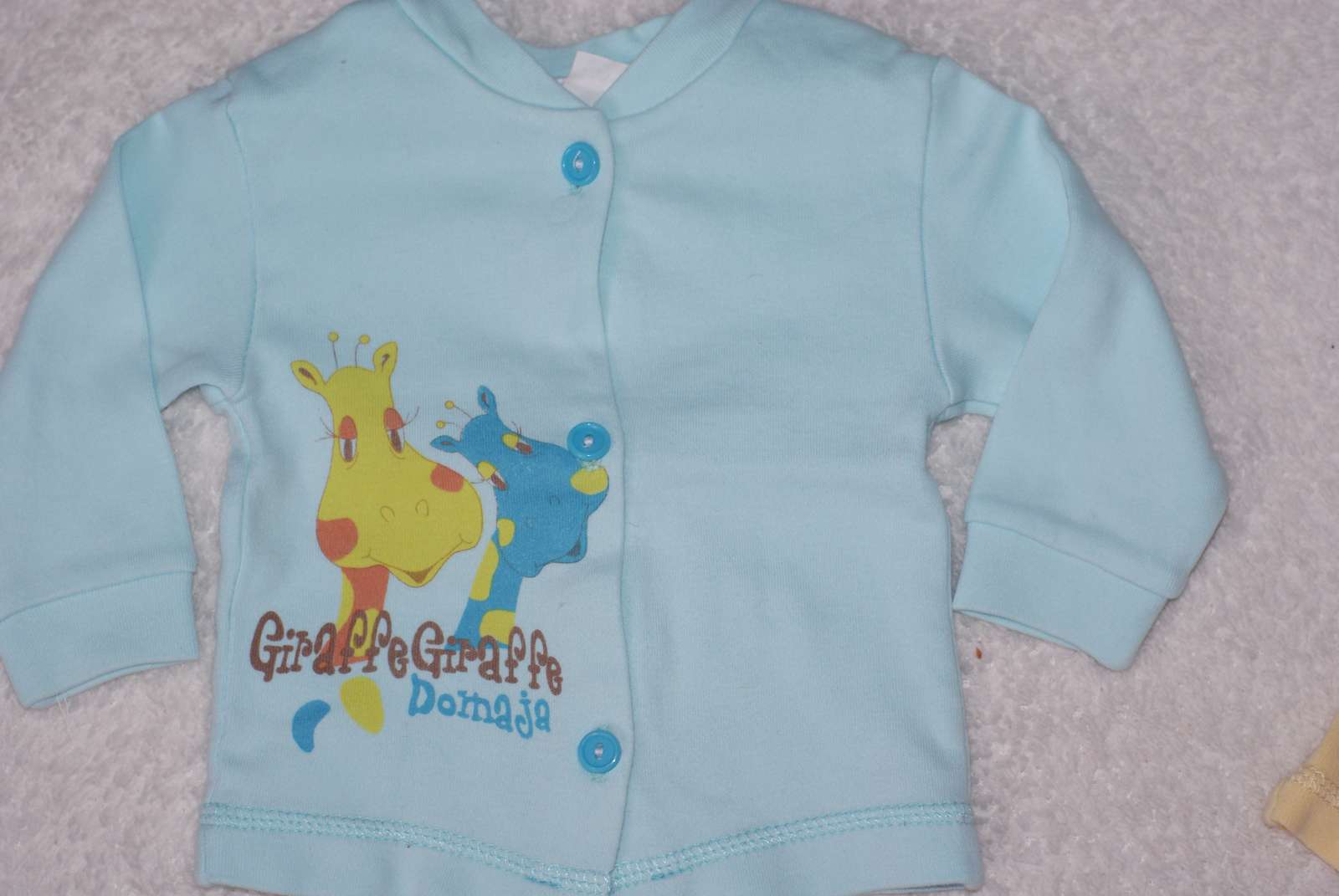 Veľký balík oblečenia pre chlapčeka. Obsahuje 4x tričiek, 1x svetrík, 2x overal na spanie, 3x dupačky, 2x polodupačky, 1x tepláčky, 5x body, 1x čiapočka, 6párov ponožiek, 1x papučky, 4x kabátik, 1x podbradník. Oblečenie je vo veľmi dobrom nosenom stave. Najhoršie opotrebenie drobné žmolky od prania. Niektore kúsky takmer nenosené. Upozorňujem na fliačik na jednom modro-bielom bodynku a na podbradníčku. Myslim, ze dalsim pranim by mohli zist. Biely kabátik je praním trošku roztiahnutý.