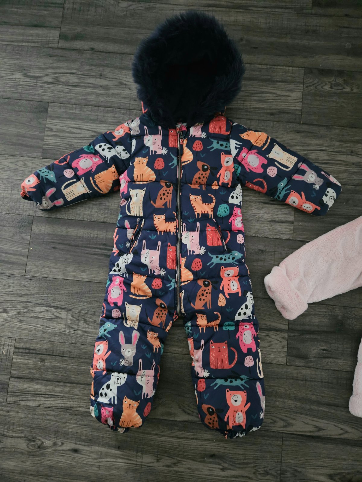 Kombinéza- super stav bez poškodení, teplučká, podšitá flísom. Dĺžka od pleca nadol je cca 80cm.
