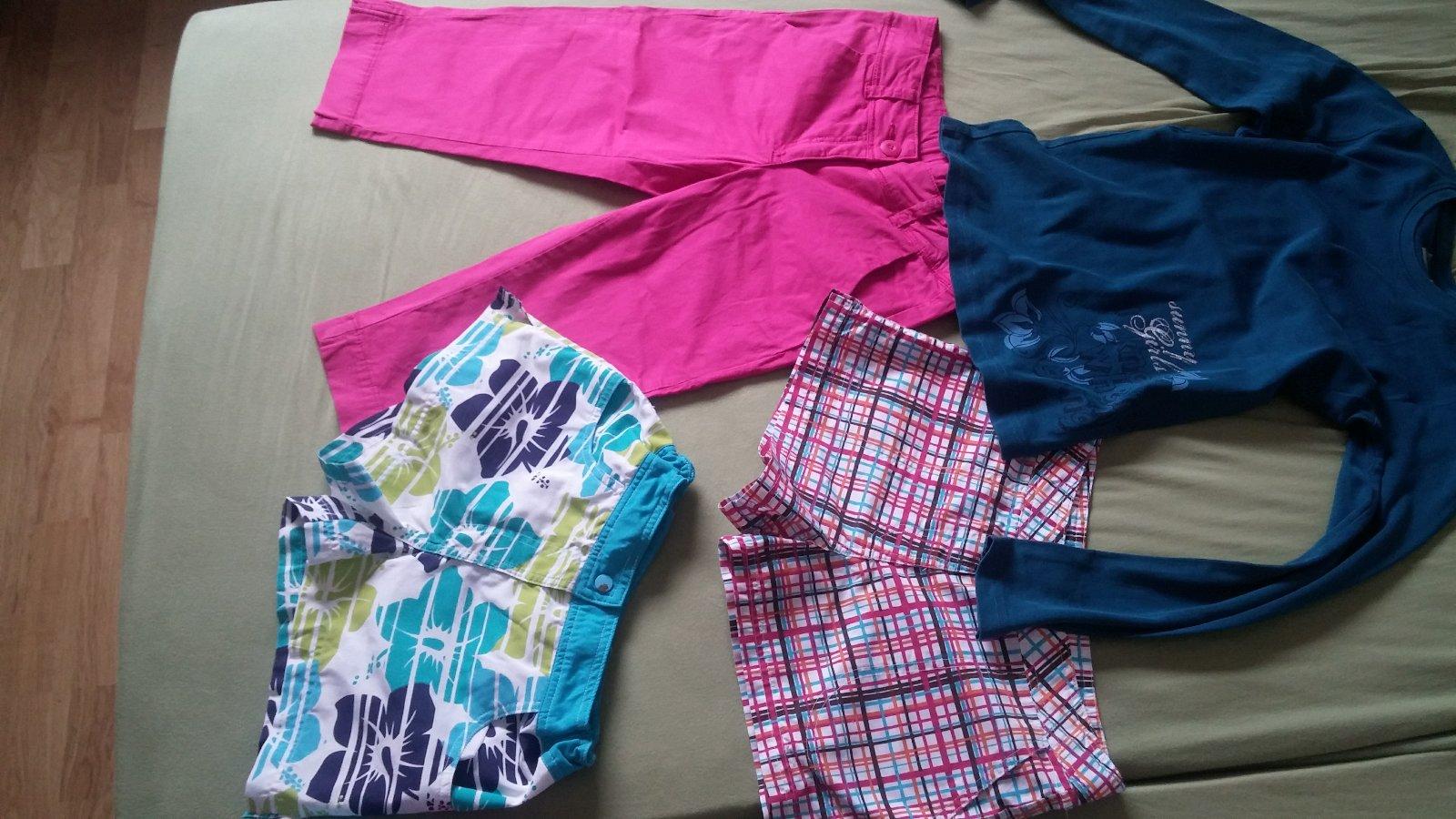 Mix v top stave.Prve a druhé rifle veľkosť 140 Hm,prve su tensie na teraz ,kratasy 140,146,tricka cca 140.Vsetko v top stave Nemeriam Všetko čo je na foto bud za 10e alebo kus po 2e,tricka spolu 2...