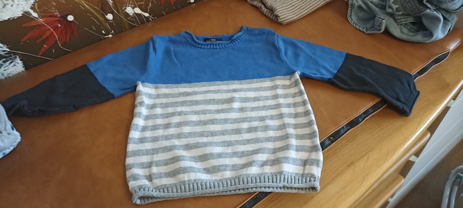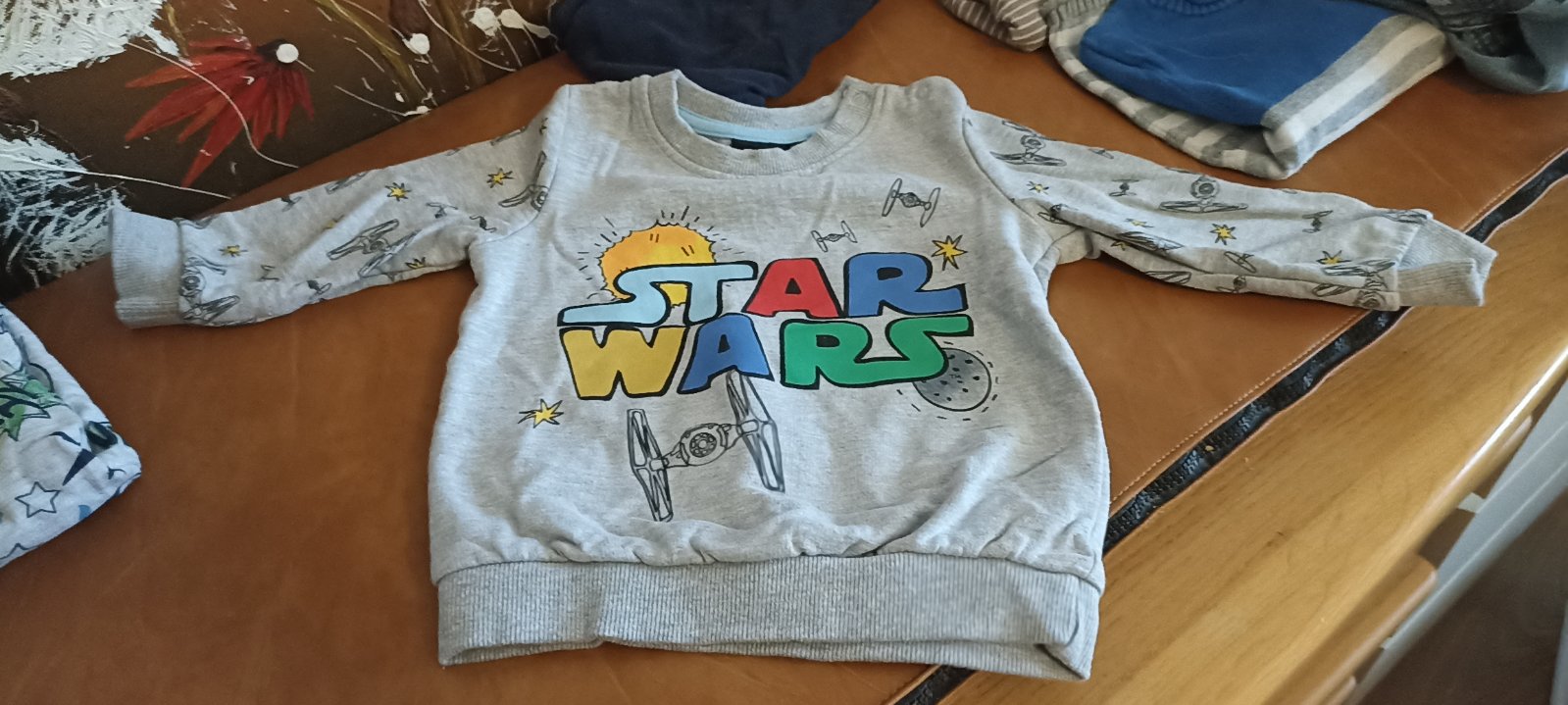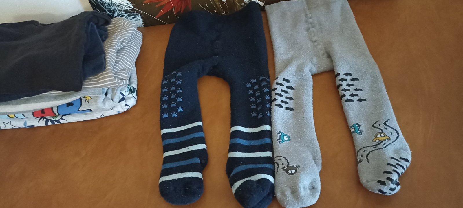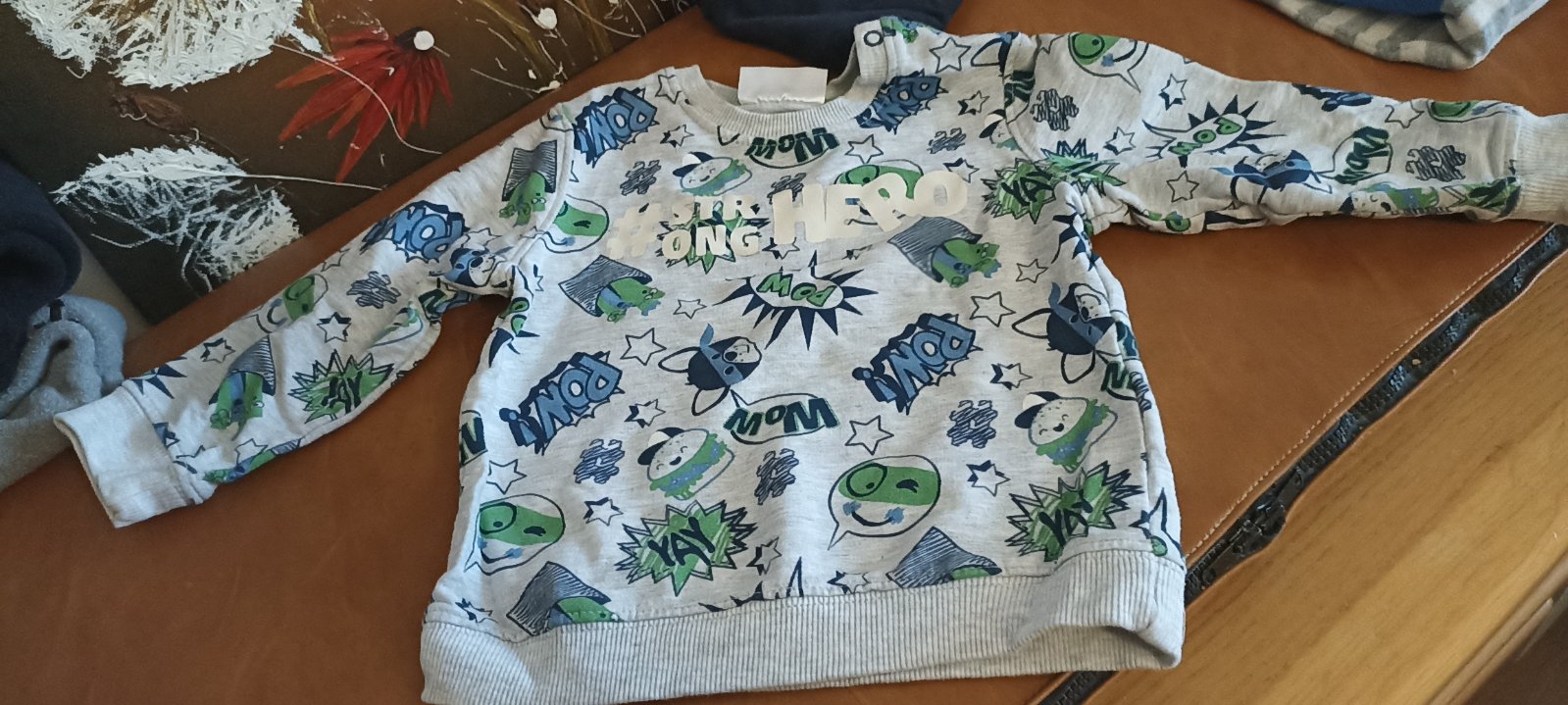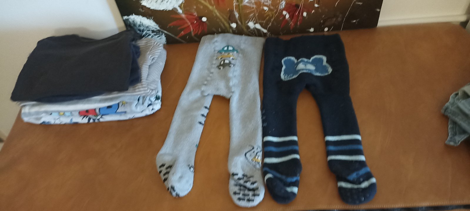 Balík obsahuje body H&M, svetrík Next, mikiny, riflovu košeľu F&F a set body a trakacov F&F. Mikiny len oprate, nenosené. Pančušky sú froté a majú protišmykové prvky, tie pribalim v prípade záujmu. Balík obsahuje aj komplet trakacov a body Mickey,ktoré sú na foto nižšie. Cena symbolická, vecičky sú bez poškodenia.