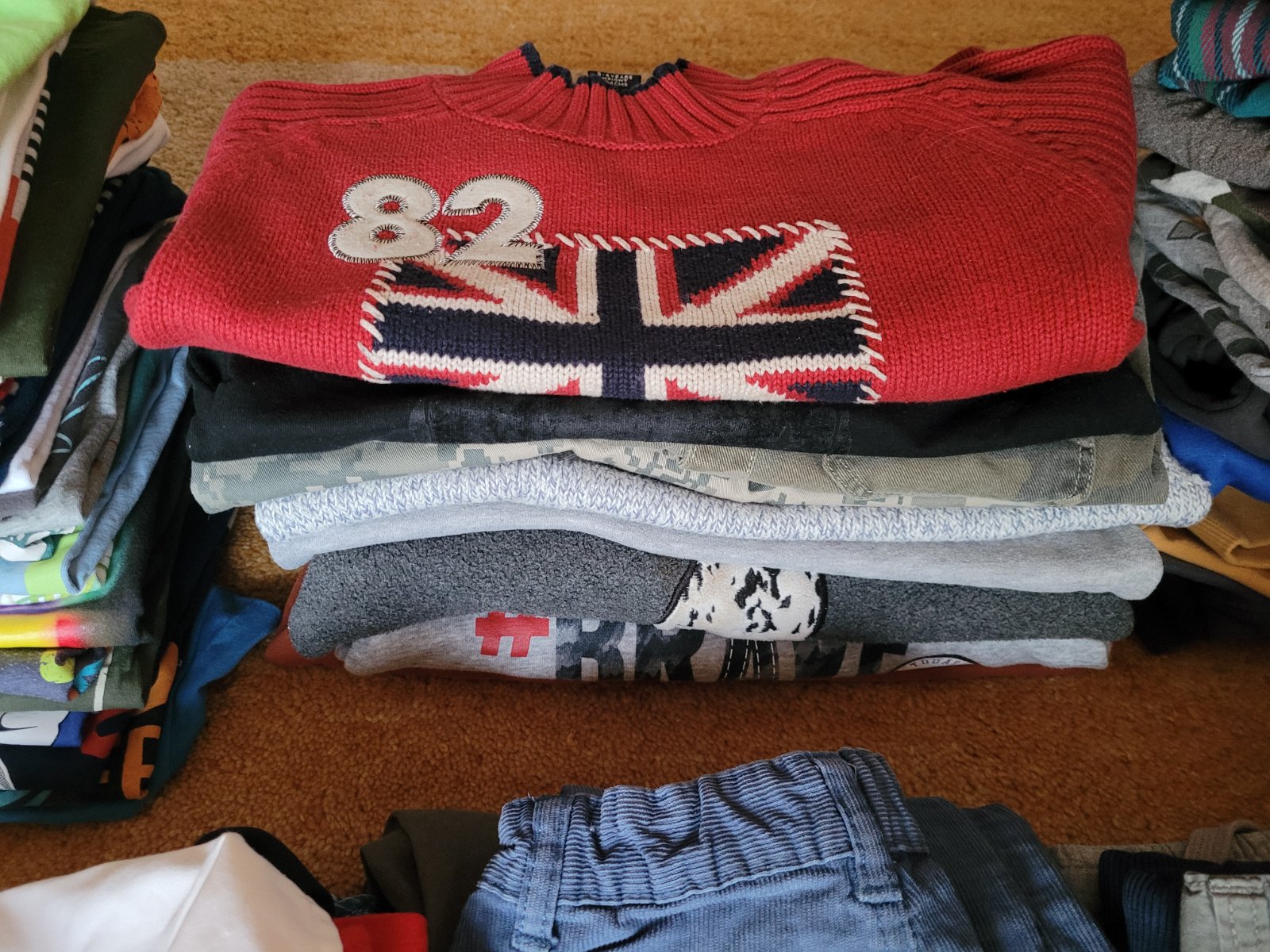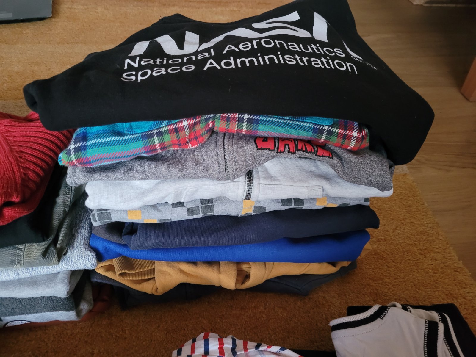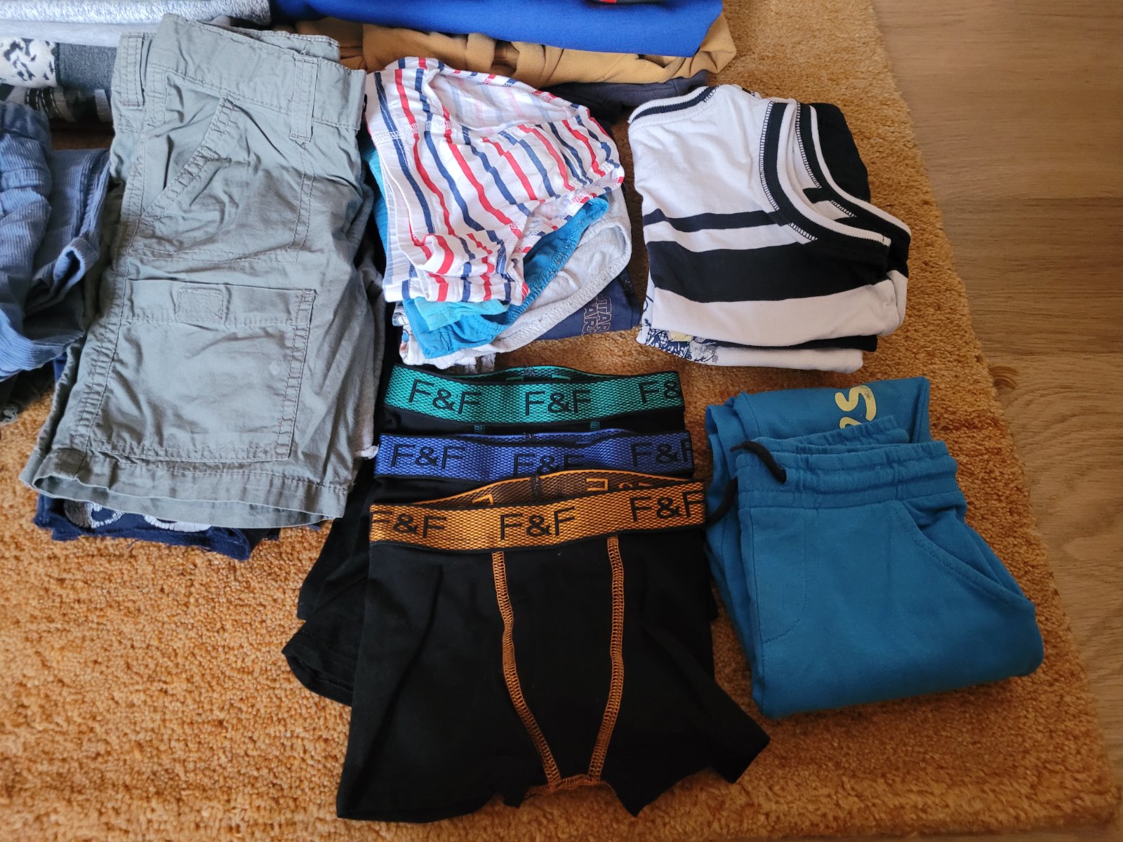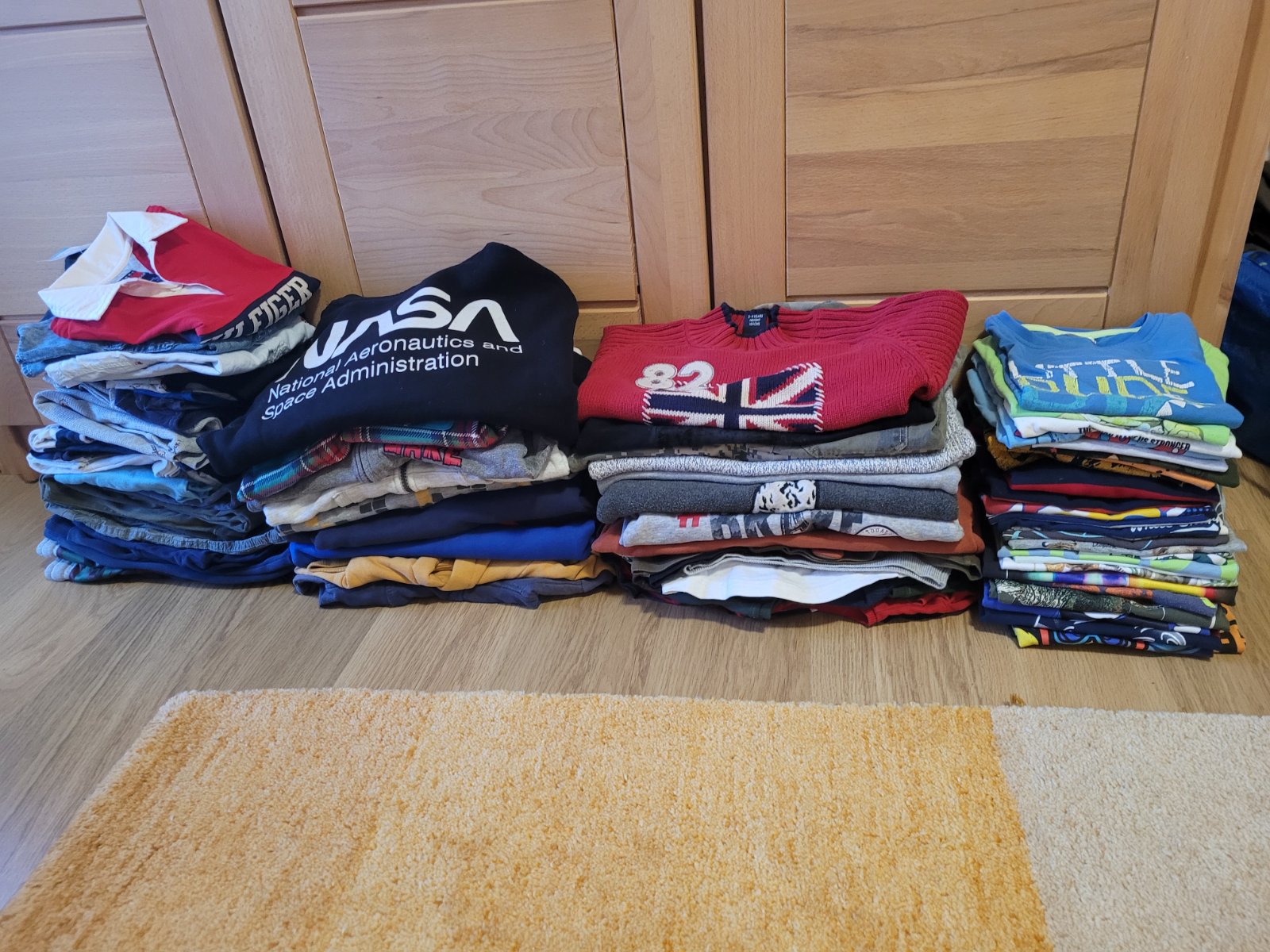 Detské oblečenie na chlapca, veľkosť od 3 do 7 rokov, veľkosť 98-122 váha 10,3 kg: mikiny s kapucou/10ks,tričká dlhý rukáv/12ks,tričká krátky rukáv/29ks,košele/3ks, svetre a mikiny bez kapuce/9ks,nohavice/2ks, kraťasy/5ks,tielko/4ks,pyžamovy vršok/2ks,tepláky1x,spodky/15ks.
