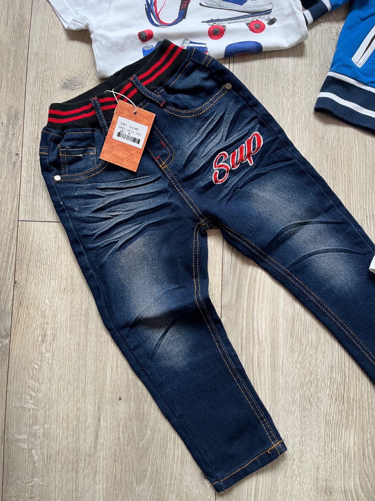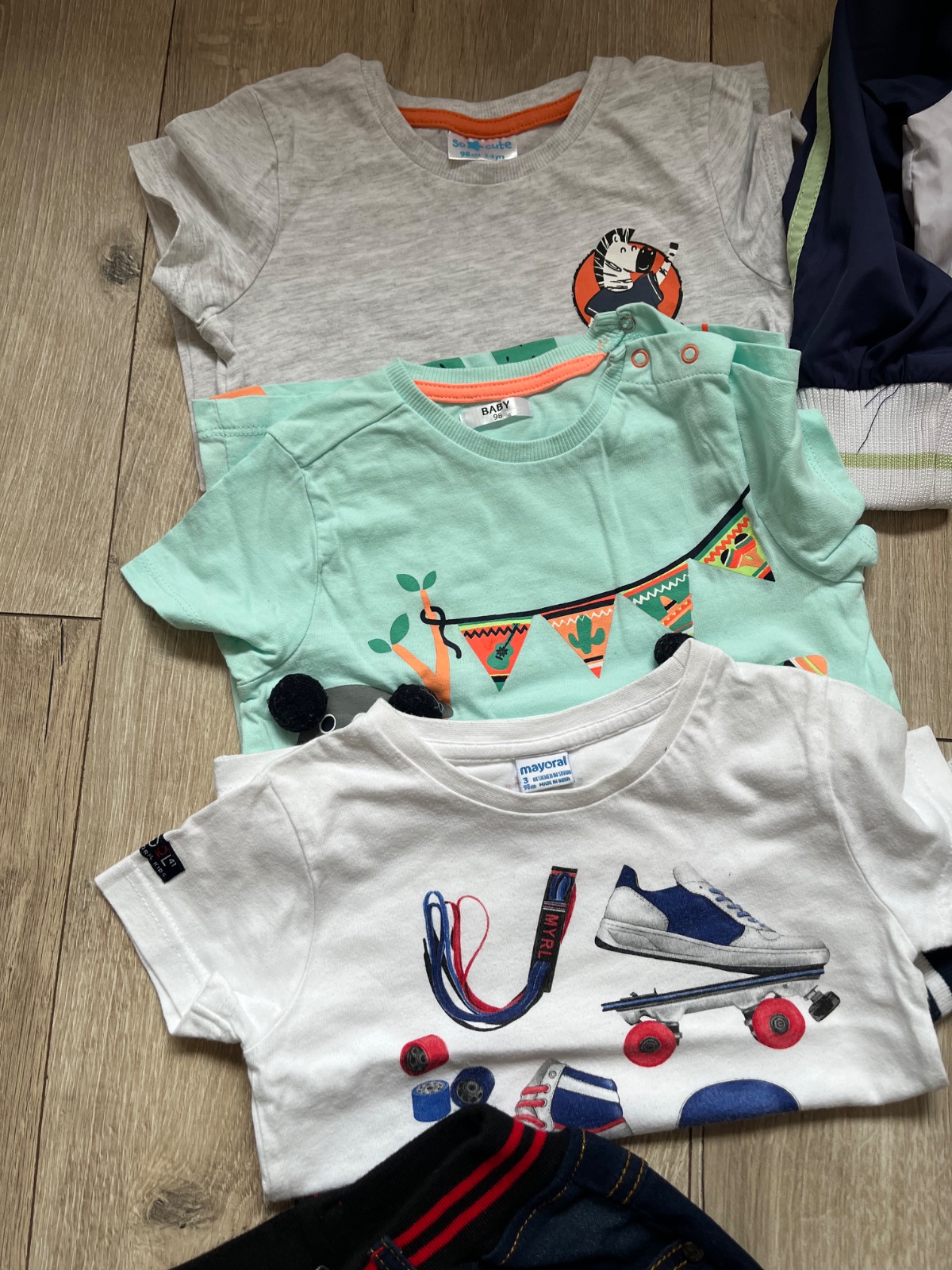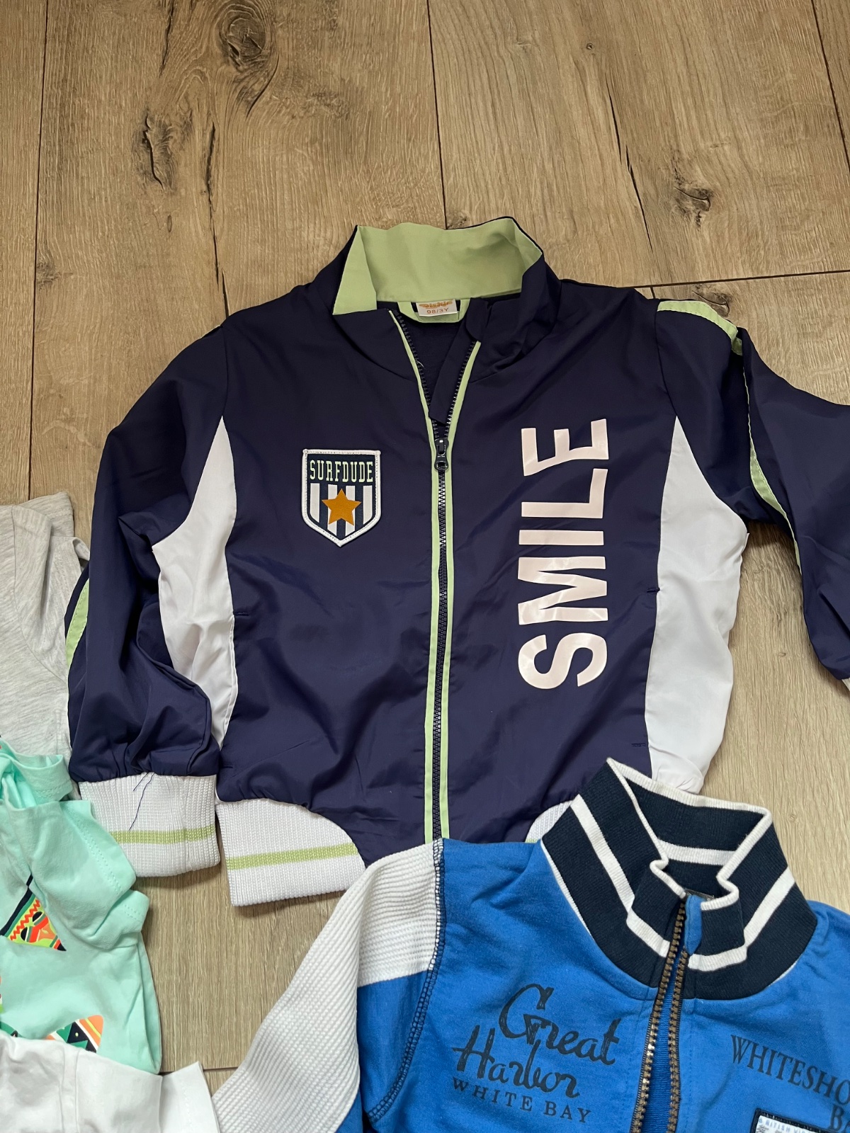 Balík obsahuje vetrovku, mikinu, tričko s dlhým rukávom, 3x tričko s krátkym rukávom a rifle nové s visačkou.