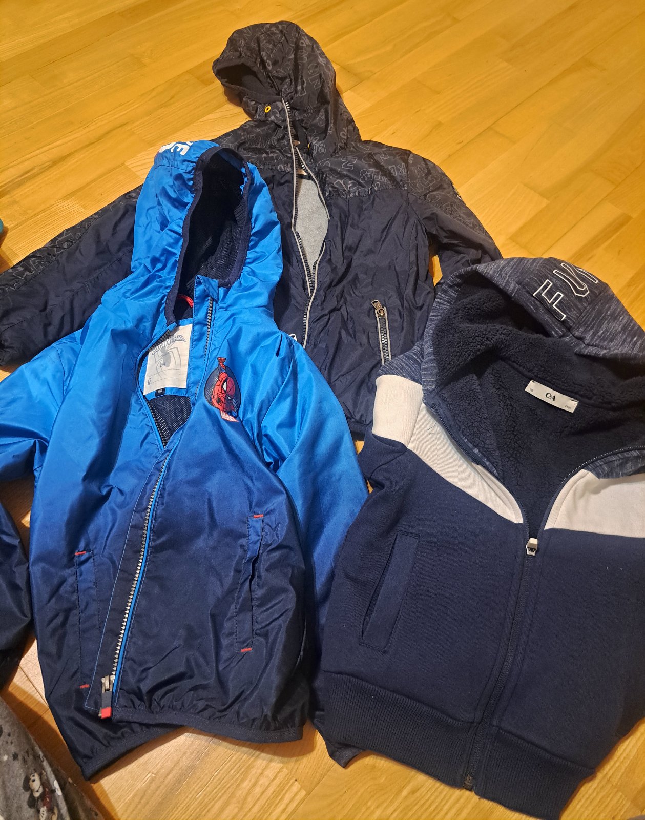 Balik obsahuje rifle predĺžený sveter, tričko s dlhým rukávom, teple mäkké pyzamo, 2 prechodne bundy a zateplena mikina. Veci sú v dobrom stave po jednom dietati