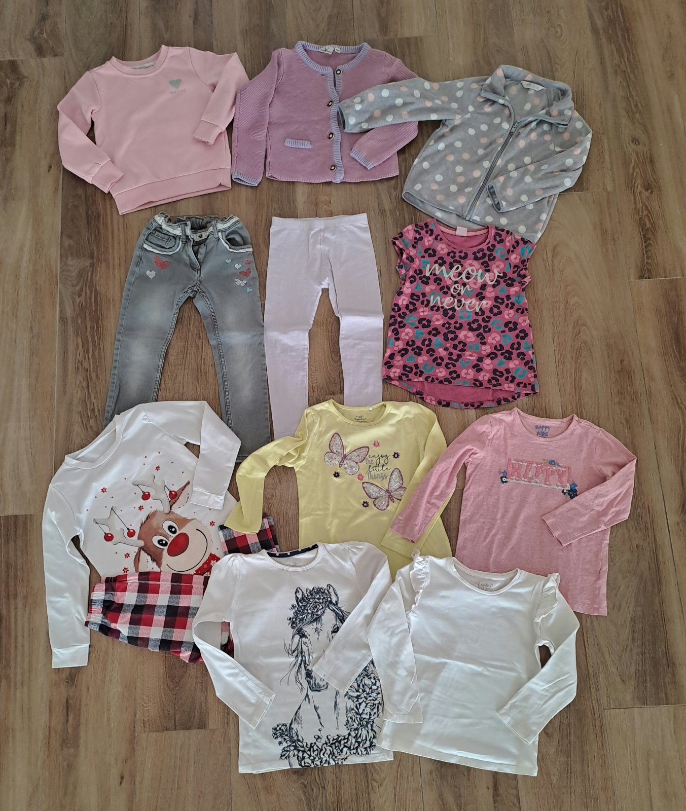 Ponúkam balik oblečenia pre dievcatko velkost 116, obsah balíka : župan, svetrik z jemnej vlny, vesta, mikina, bundicka macko, dlhé tricko s 3/4 kratasami
