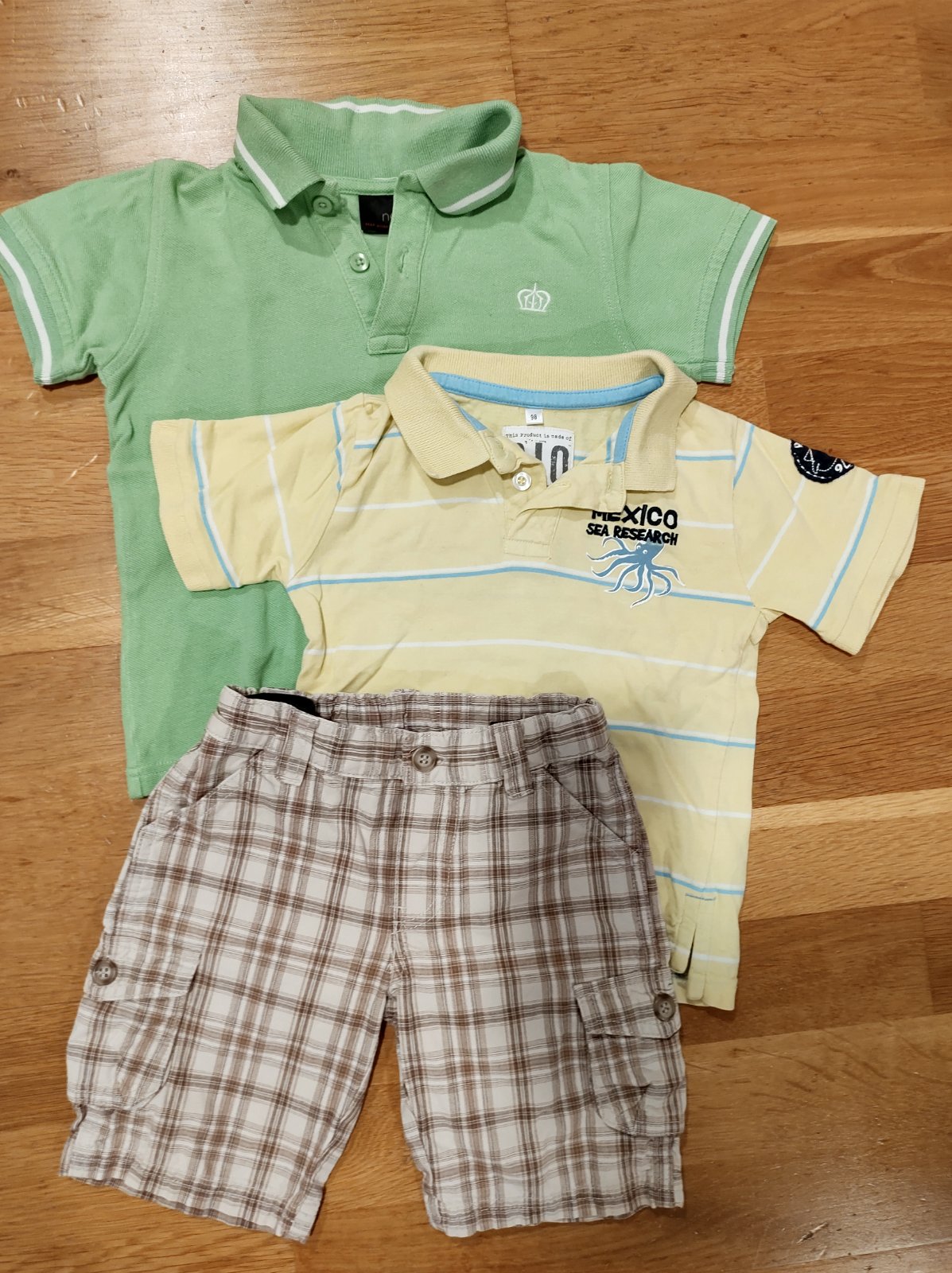 Balík v dobrom nosenom stave. Biele šortky značky Champion veľkosť S, čierne šortky veľkosť L, biela sukňa England značky Pilot veľkosť píše 10(S), riflova sukňa veľkosť M, povedala by som že aj S ...
