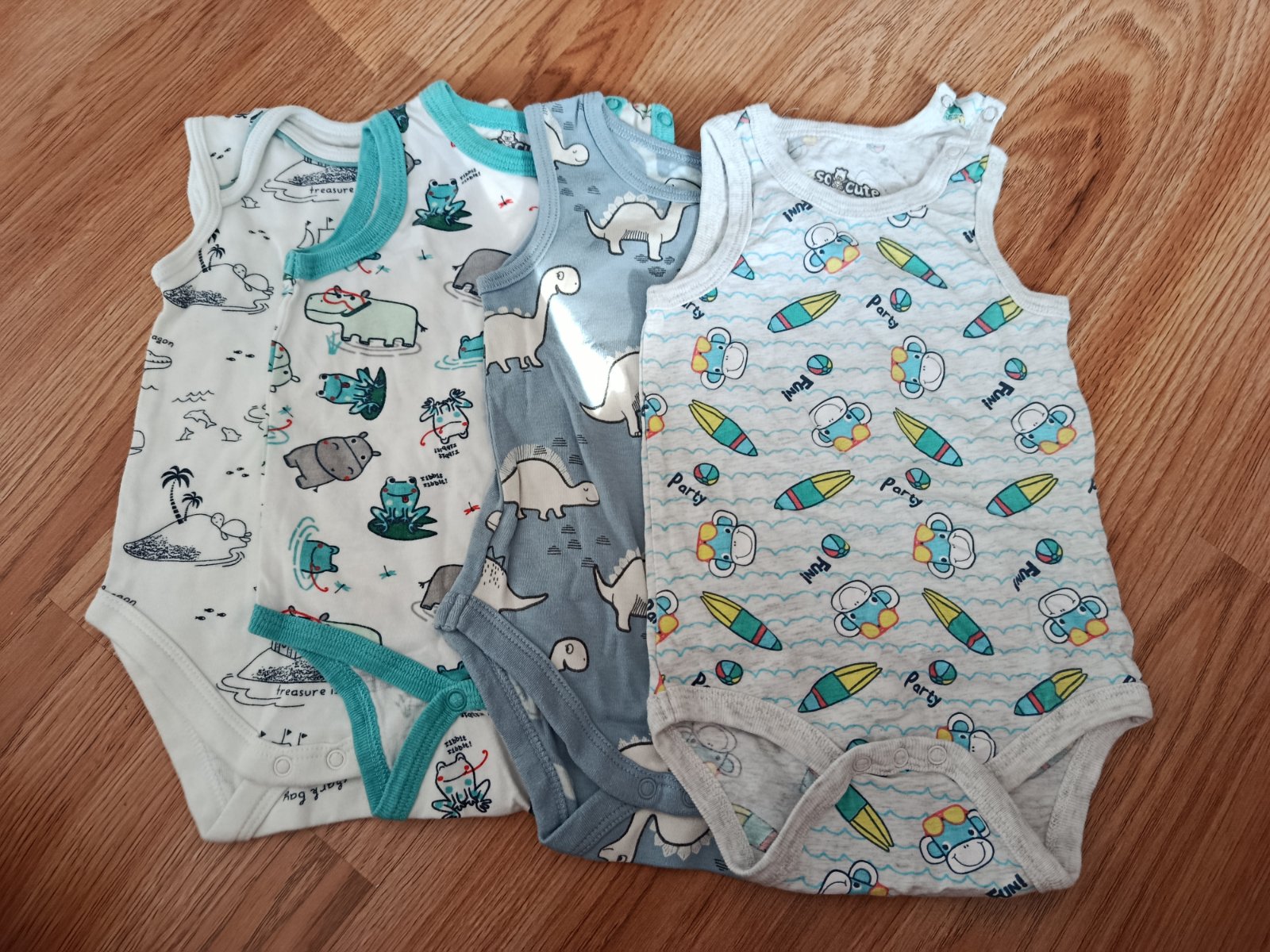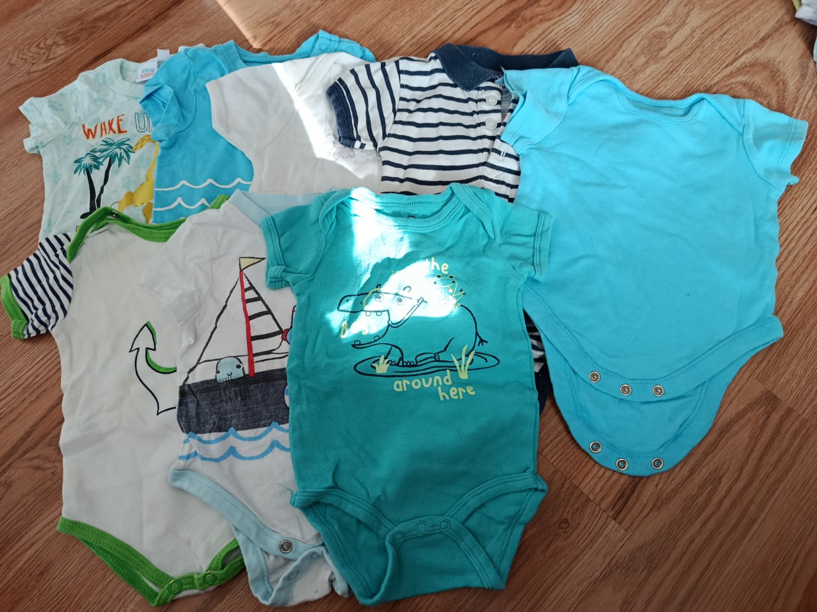 Balík letného oblečenia vo veľkostiach 62-68. 9x body krátky rukáv 1x krátke nohavice na traky 2x "overal" krátky 2x tričko krátky rukáv 3x tenučké nohavice 1x súprava body, kraťasy a čiapočka ...