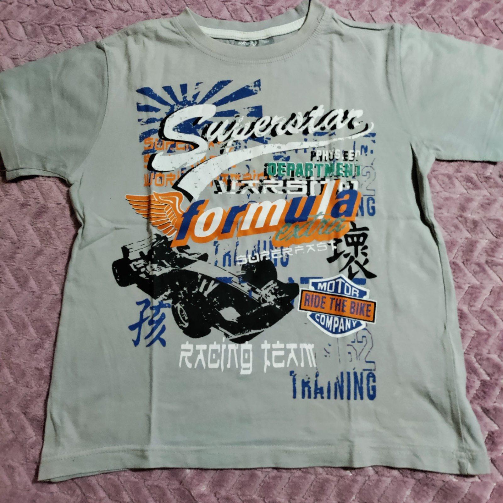 Balík obsahuje 4ks tričká ,maskacove tričko kids dl51cm,s36cm,( minizmolky),sivé tričko s motorkárom Palota 122 ,dl48cm,s36cm,aj na zadnom diely motorkár,sivé tričko s formulov Okay vel122 ,dl49cm, s38cm, čierne tričko Next vel128,dl52cm, s38cm,pekná sýta farba,tristrtaky kávové Regatta vel128,dl55cm,v páse regulácia gumové, tristrtaky s nápismi dl47cm,v páse guma,veci sú bez dier a fľakov vhodné do školy ,cena spolu 12€ plus poštovné, možnosť aj na kusy ale ako balík vyhodnejsie.