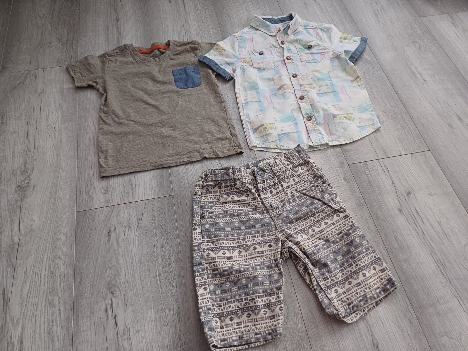 Vertbaudet kraťase, tričko matalan, košeľa F&F. Cena spolu za všetko.