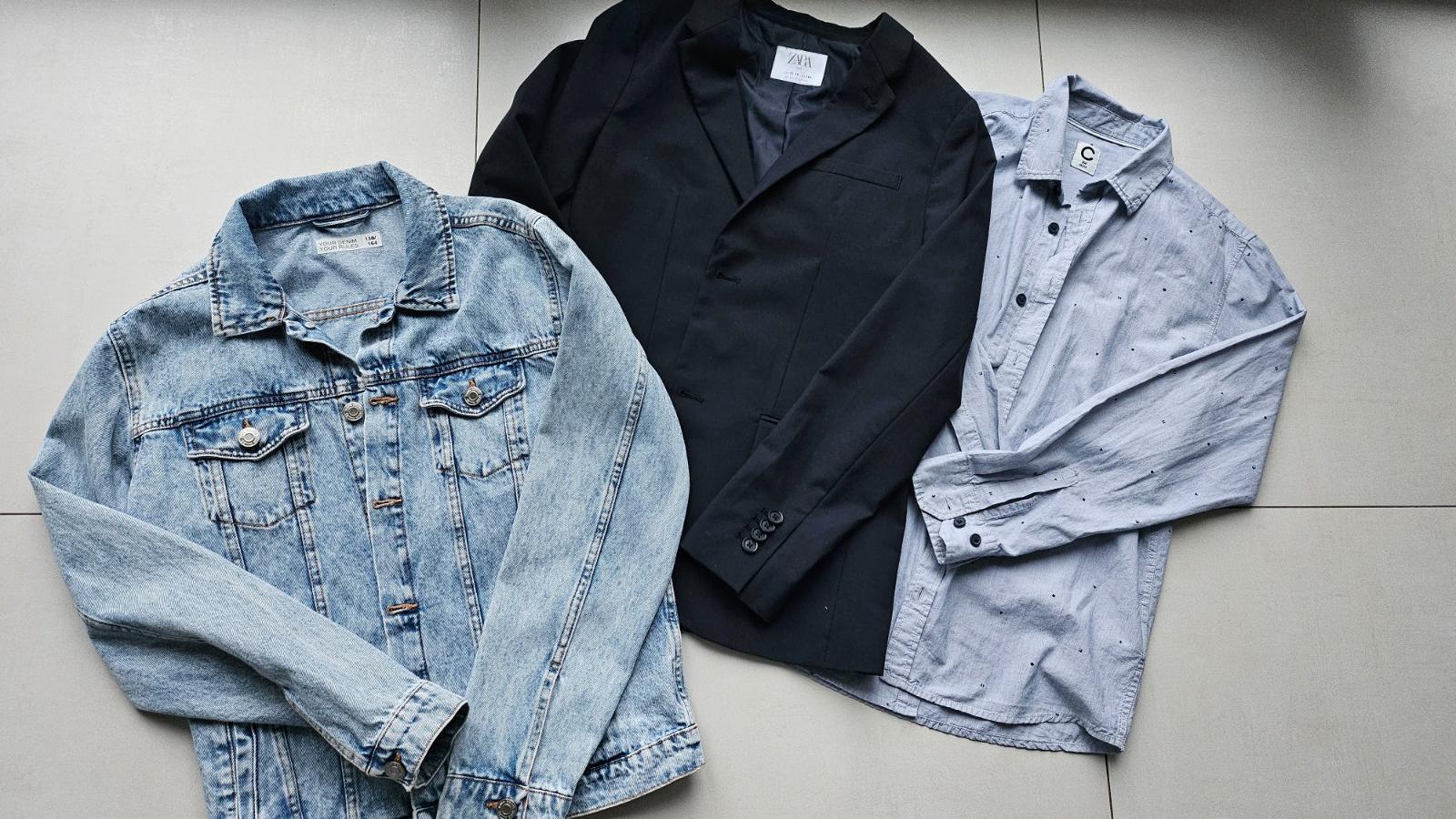 Vsetko velkost 164 a aj to tak sedi. Vsetko super stav nosene len prilezitostne. Riflovka, sako zara a kosela. Predam iba spolu.
