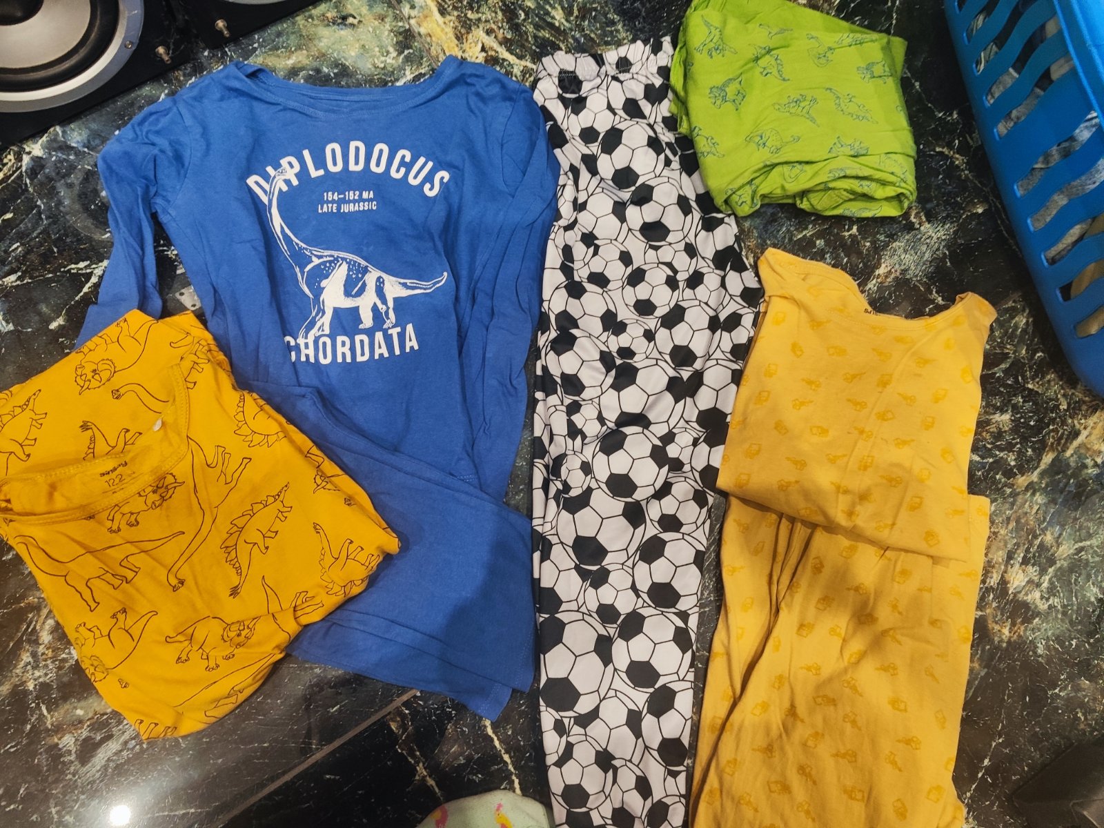 Nosené ako 122/128 všetko. Nohavice Nuno,rifle top stav. Mikiny ,pyžamá - majú sem tam fliačik. Vesmírne pyžamo dlhé top stav. Mikina despacito malá dierka na rukáve .