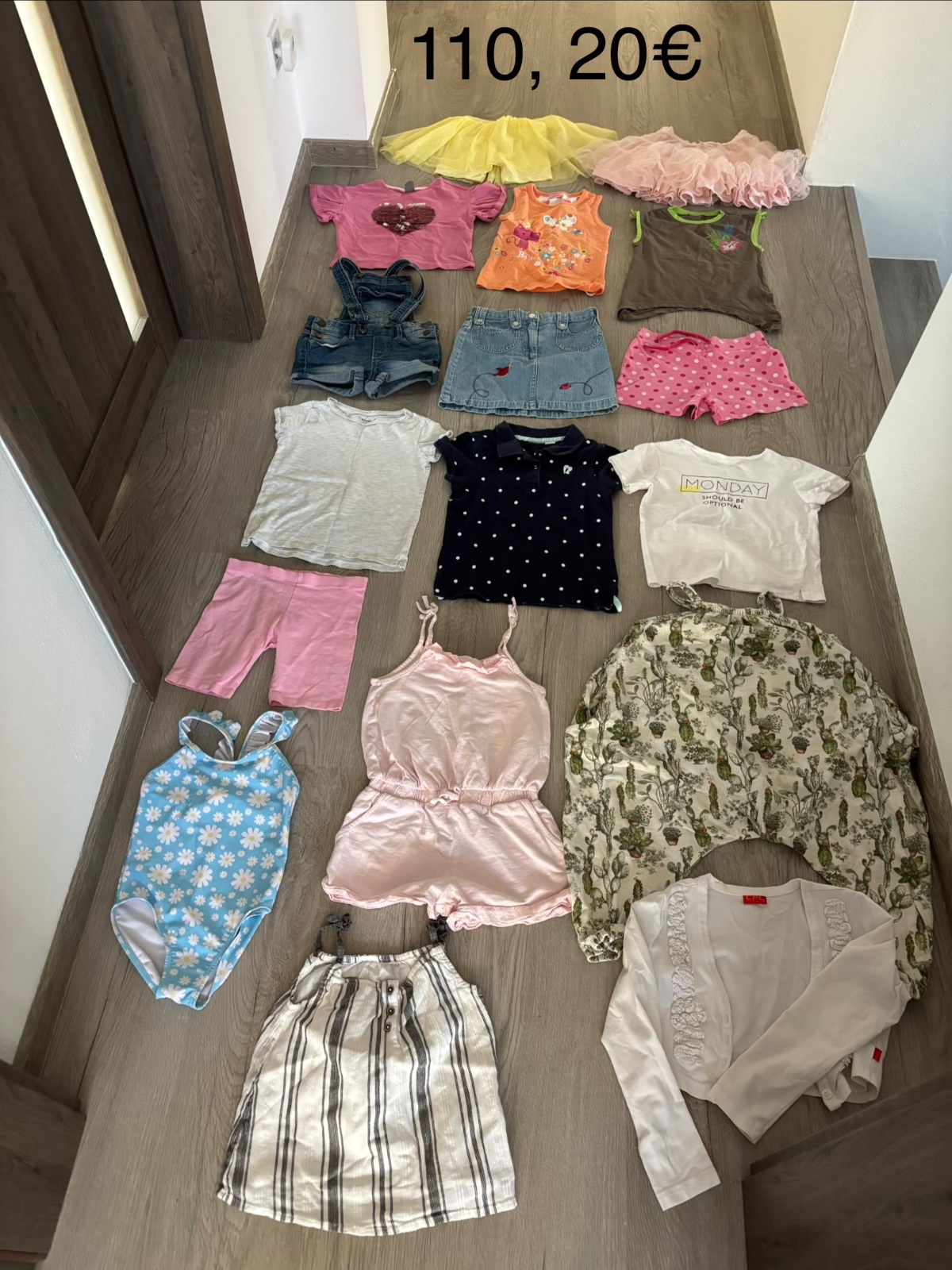 6 kusov krátkych nohavíc, nosený stav. Tie žlté legínky sú oveľa bledšie, než na fotke a majú aj fľaky, ktoré sa mi nepodarilo vyprať. Srdiečkové kraťasky majú zošúchané srdiečka na riťke. Zn. lupi...
