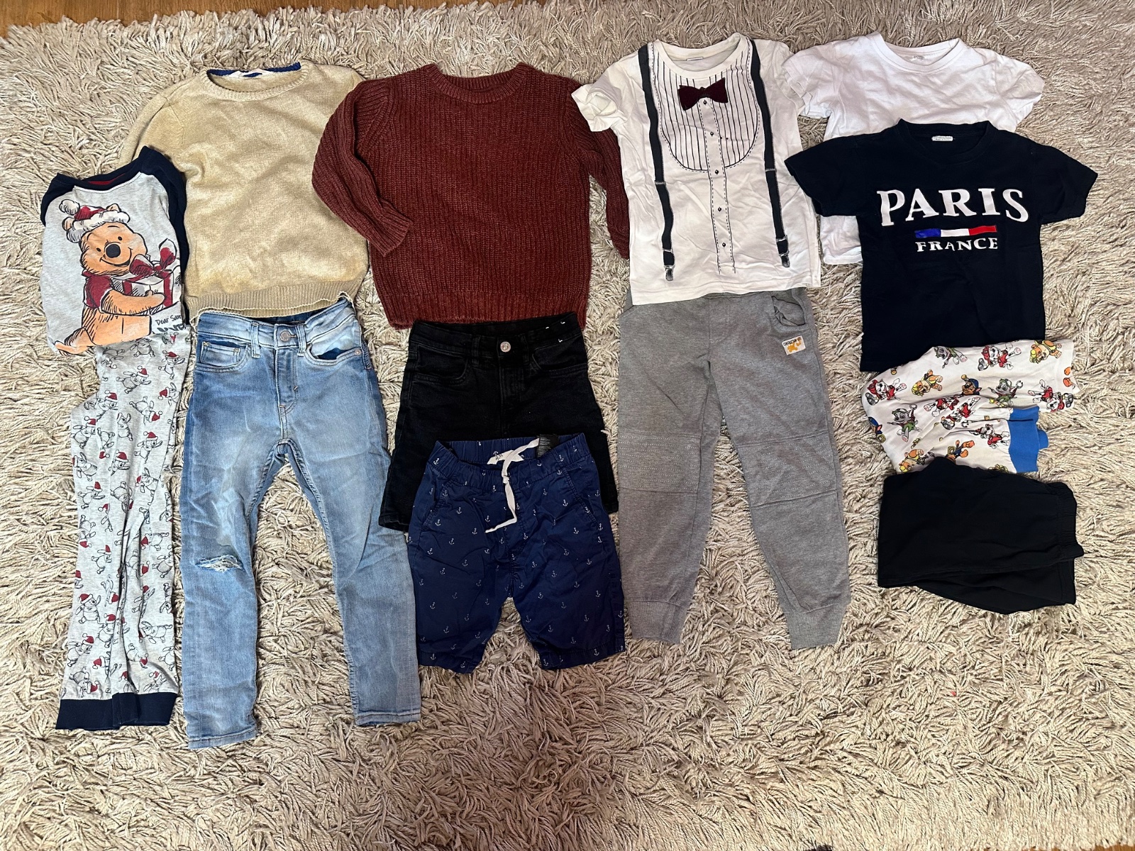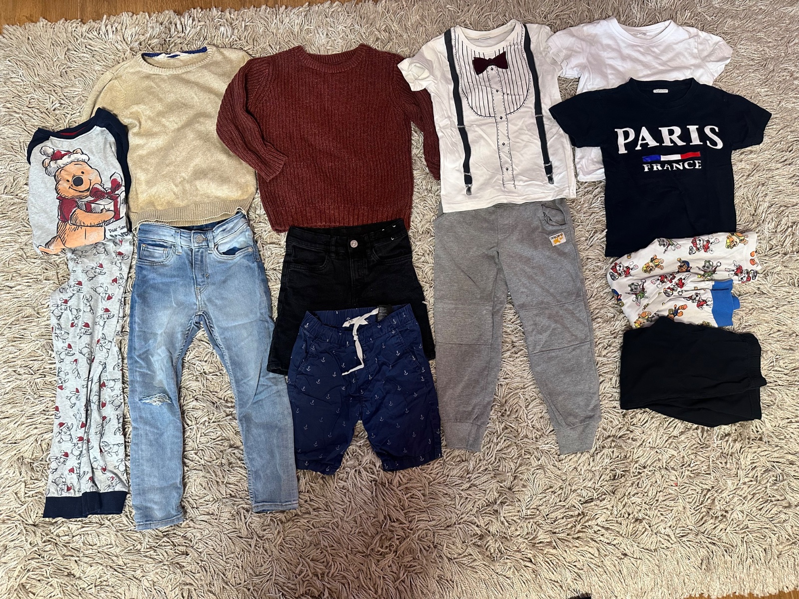 Predám balík oblečenia pre chlapca vo veľkosti 110/116, spolu 13 kusov. Mix značiek (H&M, Disney, Next, Lupilu) aj basic kúskov. Ideálne ako kompletný balík na bežné nosenie.