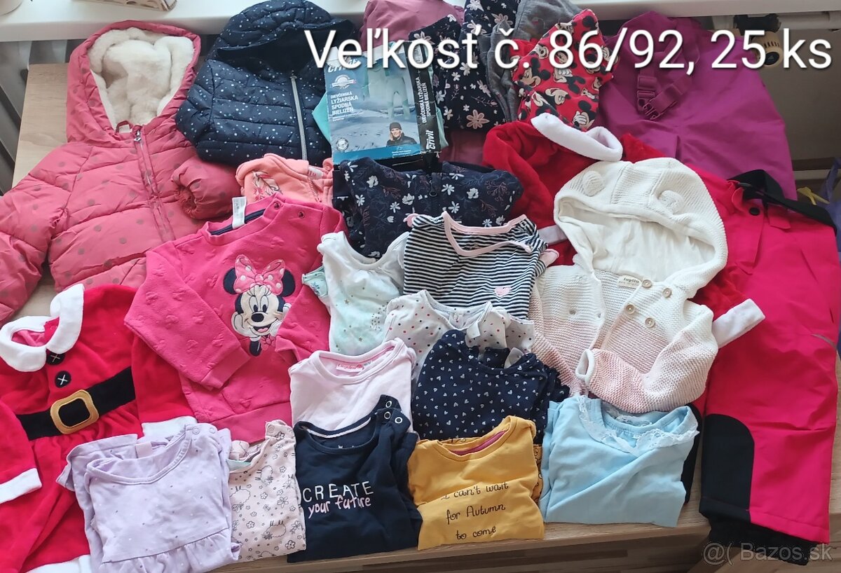Ponúkam balík oblečenia pre dievčatko, veľkosť č 86/92, sú v ňom aj NOVÉ termo oblečenie, NOVÉ oteplovacky 2ks, zimná bunda...... Spolu 25 ks