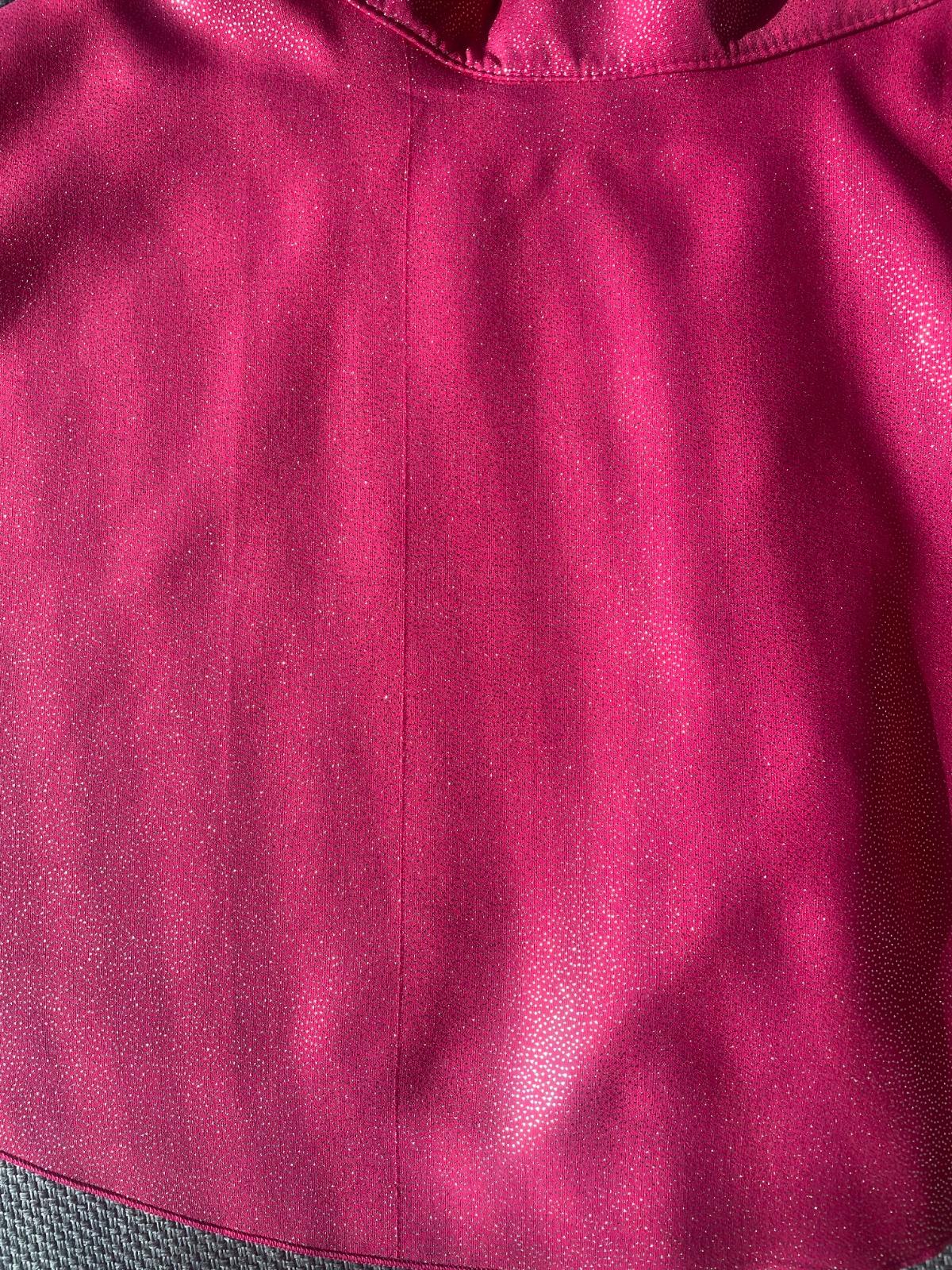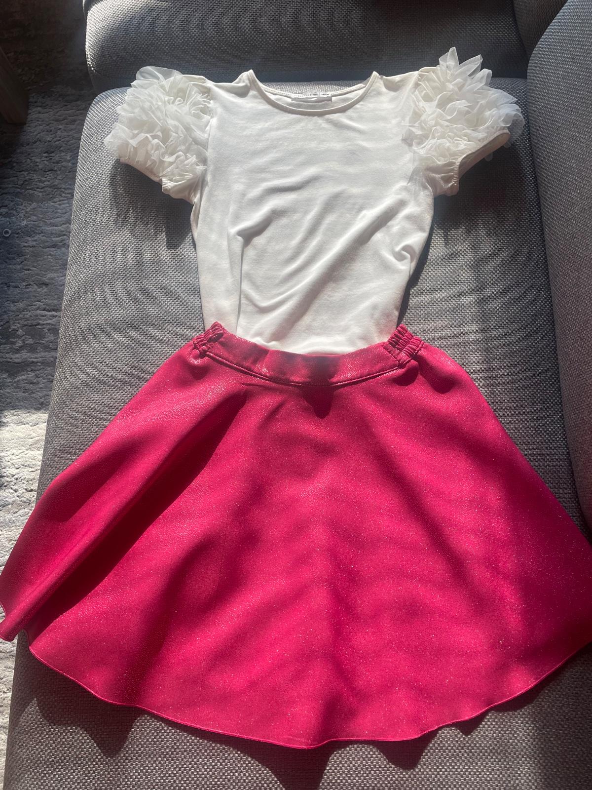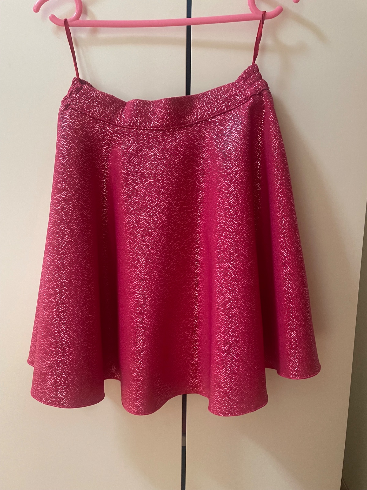 Pekná suknička, ružová so strieborným. Vpredu je taký pásik, je to od nova, ale pri nosení to nevidno. Inak veľmi dobrý stav, veľkosť 146.