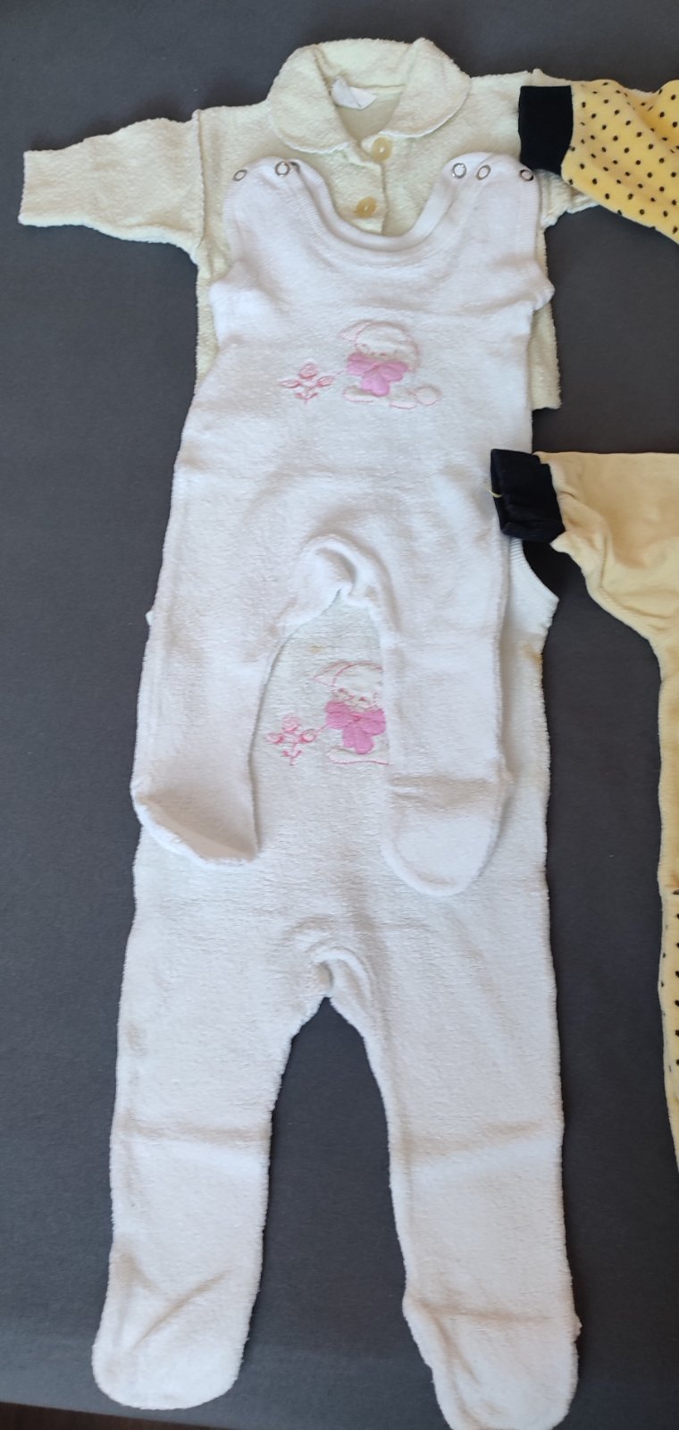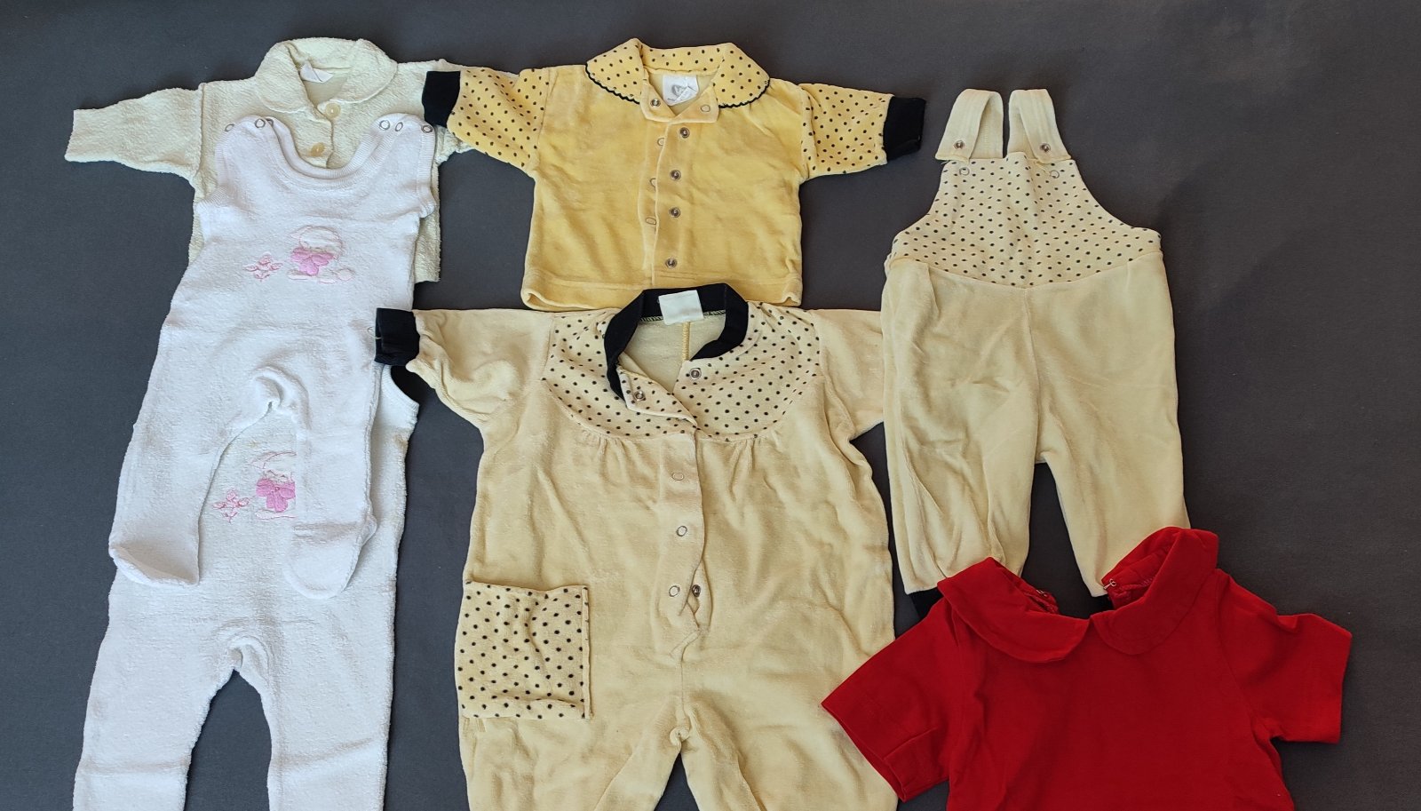 Balík retro oblečenia pre bábätko-dievčatko hľadá svojho majiteľa, ďalšieho nadšenca retro oblečenia. U nás nebol využitý, keďže sme nemali dievčatko. Vecičky sú v krásnom stave bez chýb. Pridávam aj retro čiapočku a 6kusov nových, nepoužívaných pod radníkov (na poslednej fotke)