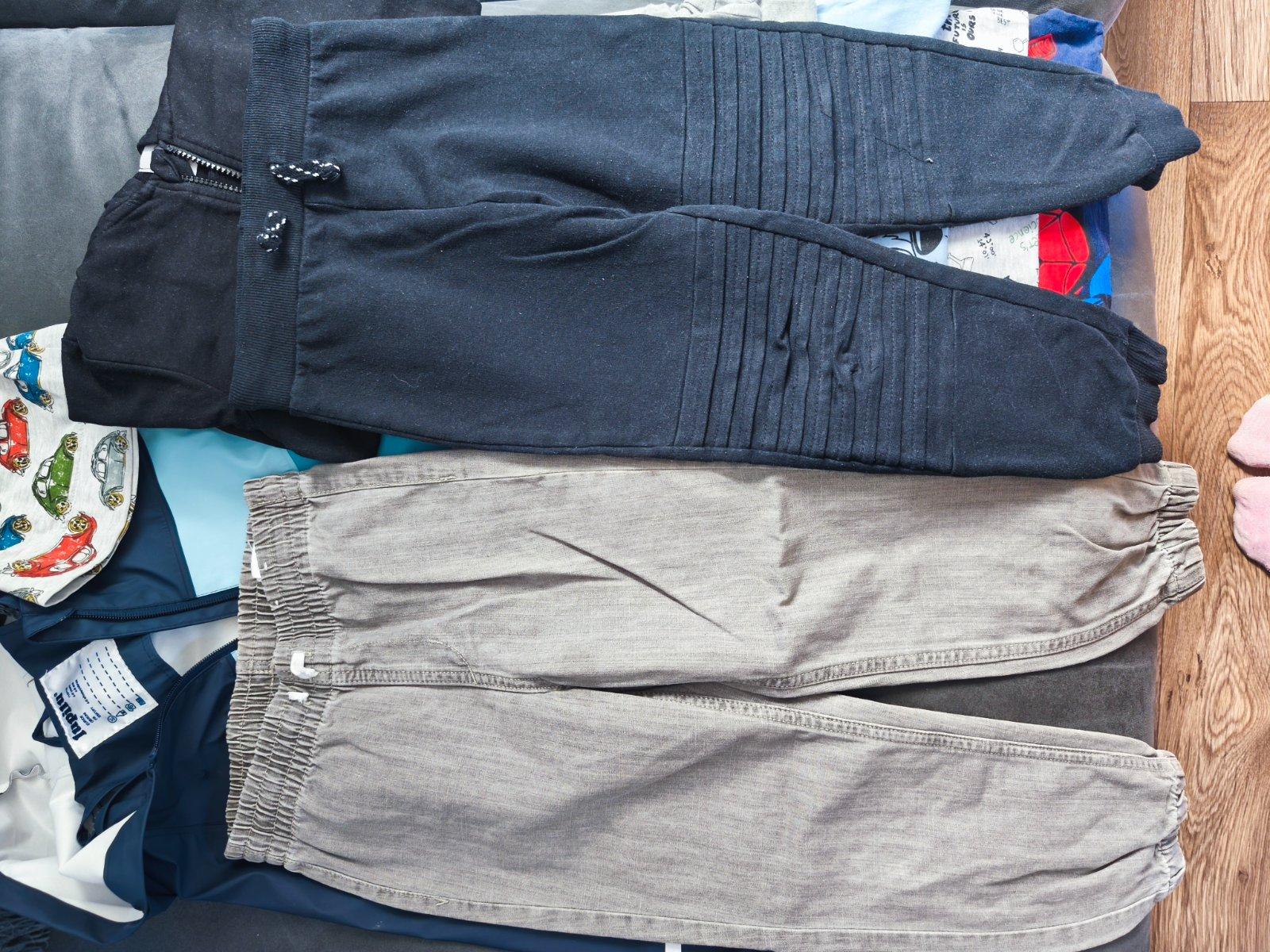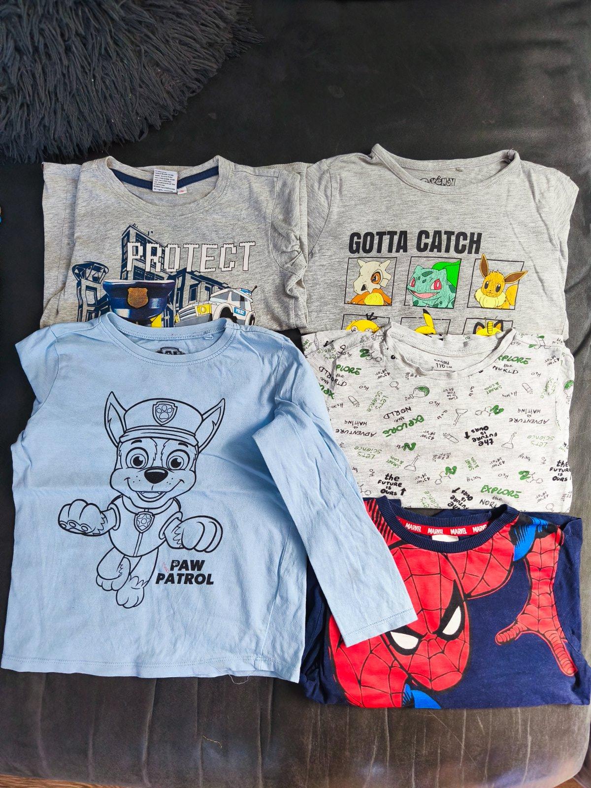116 veľkosť ale určite sa dá aj dlhšie nosiť niektoré kúsky, na modrom tričku je fľak, tričko pokemoni majú popraskané obrázky, inak sú v peknom nosenom stave