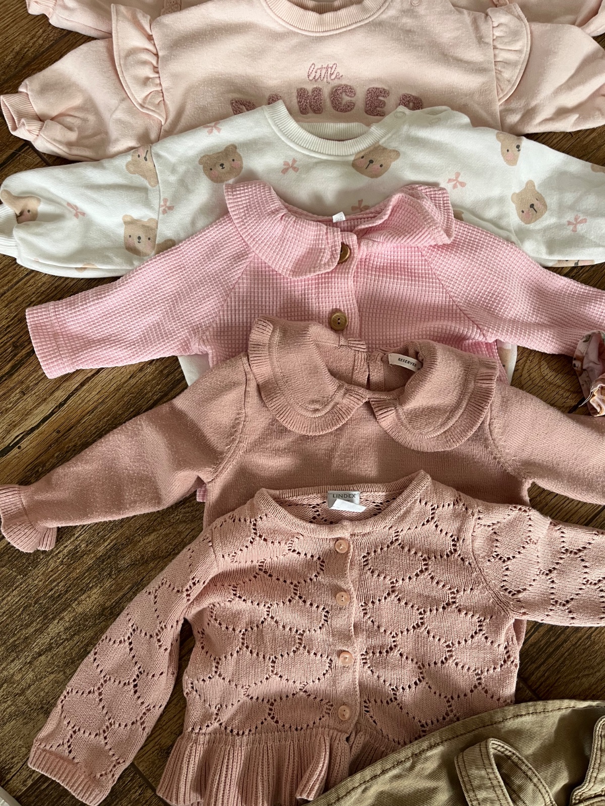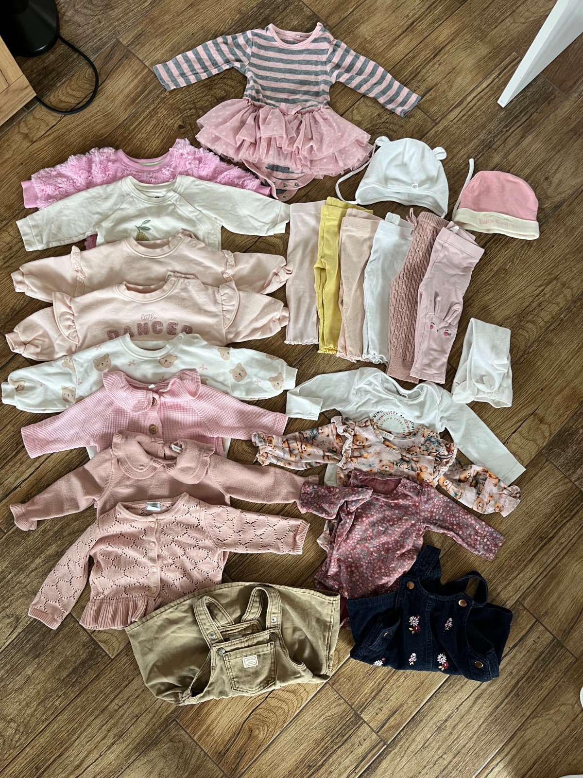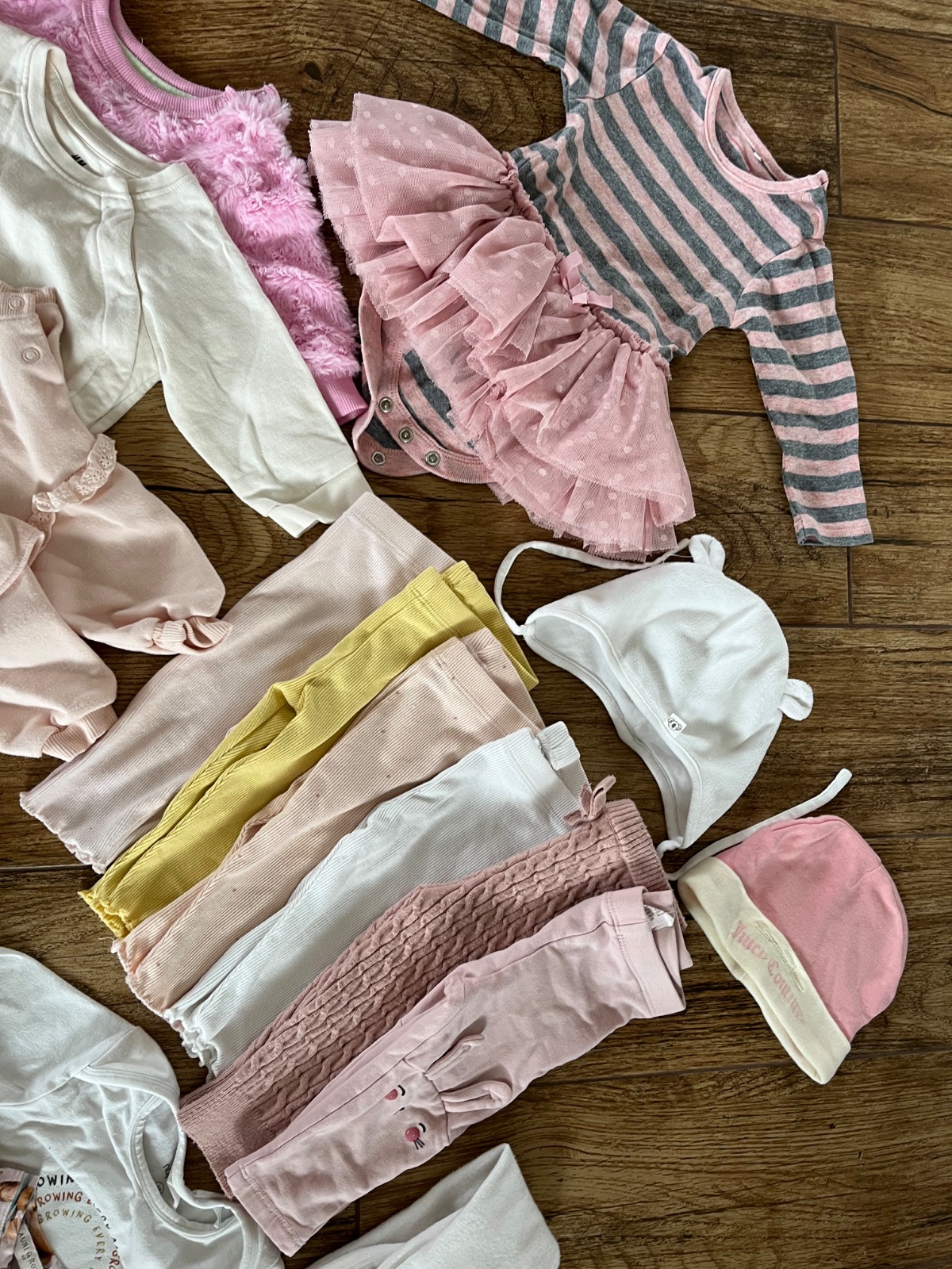 Na druhej fotke su este dvoje leginky co som zabudla odfotit. Značky Lindex,H&M,Reserved a F&F,ciapka Juicy couture.