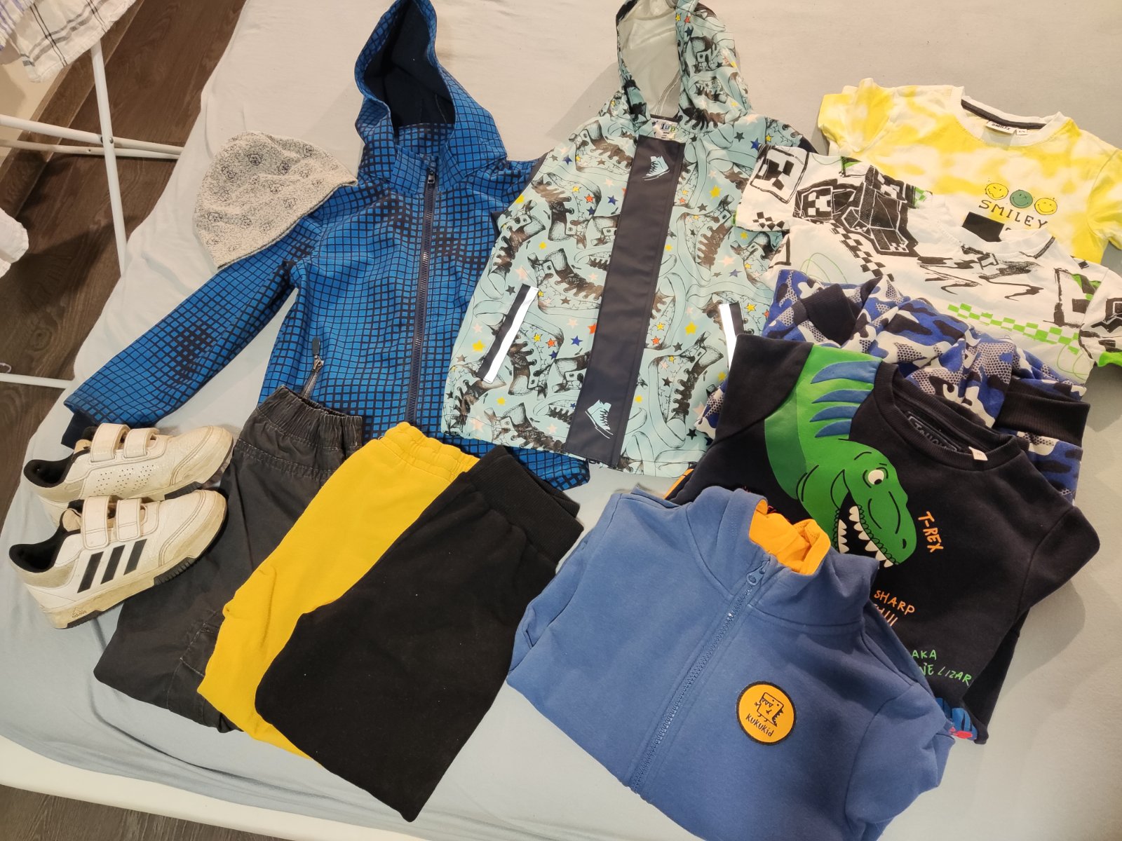 Obsahuje softshellovú bundu z Takka, hlavný zips je v poriadku,ale jeden zips na vrecku ide ťažšie a druhý je pokazený.