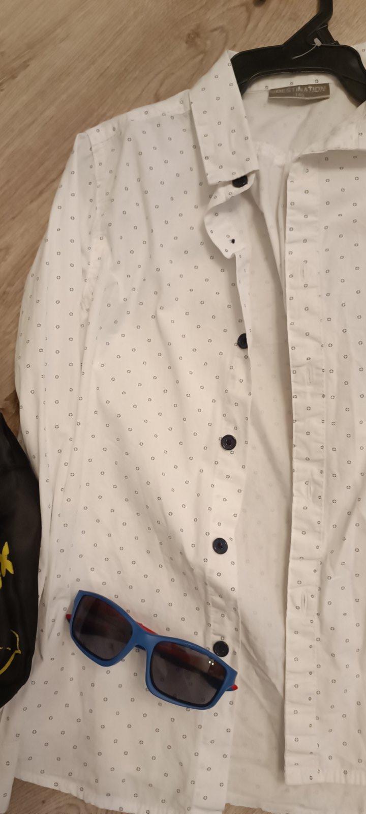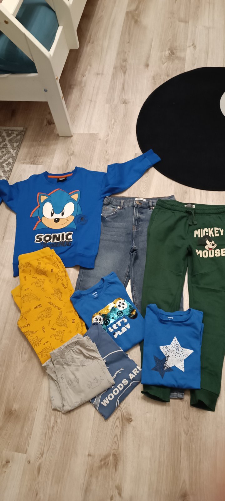 Veľkosť je 134/140,mikina,rifle,tepláky,tričká,pyzamo, košeľa len taz oblečená,ruksak a slnečné okuliare kupované v sportissime