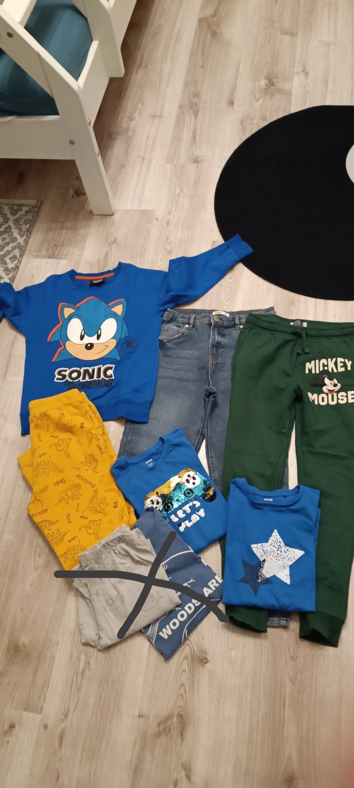 Veľkosť je 134/140,mikina,rifle,tepláky,tričká,ruksak a slnečné okuliare kupované v sportissime