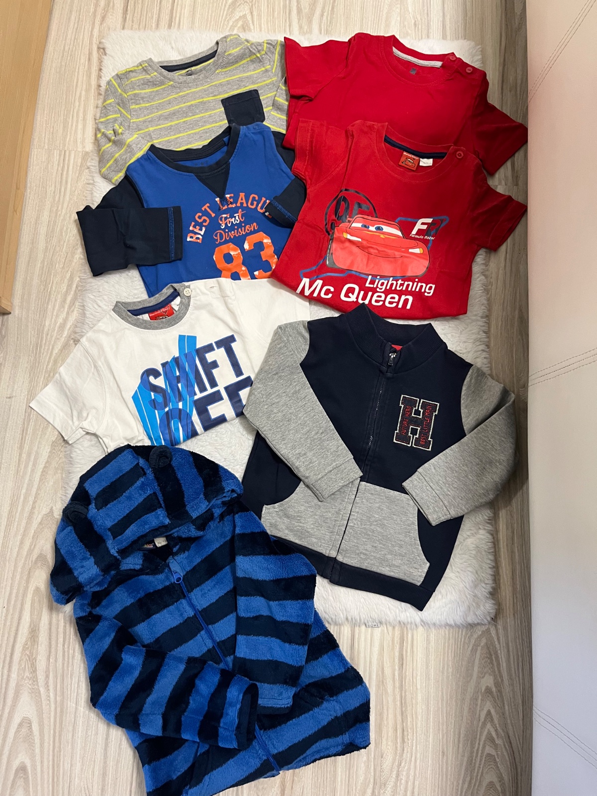 Balik veci na doma/do záhrady s menšími poškodeniami - zasite dierky / nejaký fľak / záplata. Značky: väčšina Next, H&M a iné. Balik obsahuje: Tricko s dlhým rukávom 2x Teplaciky 6x Mikina cez hla...